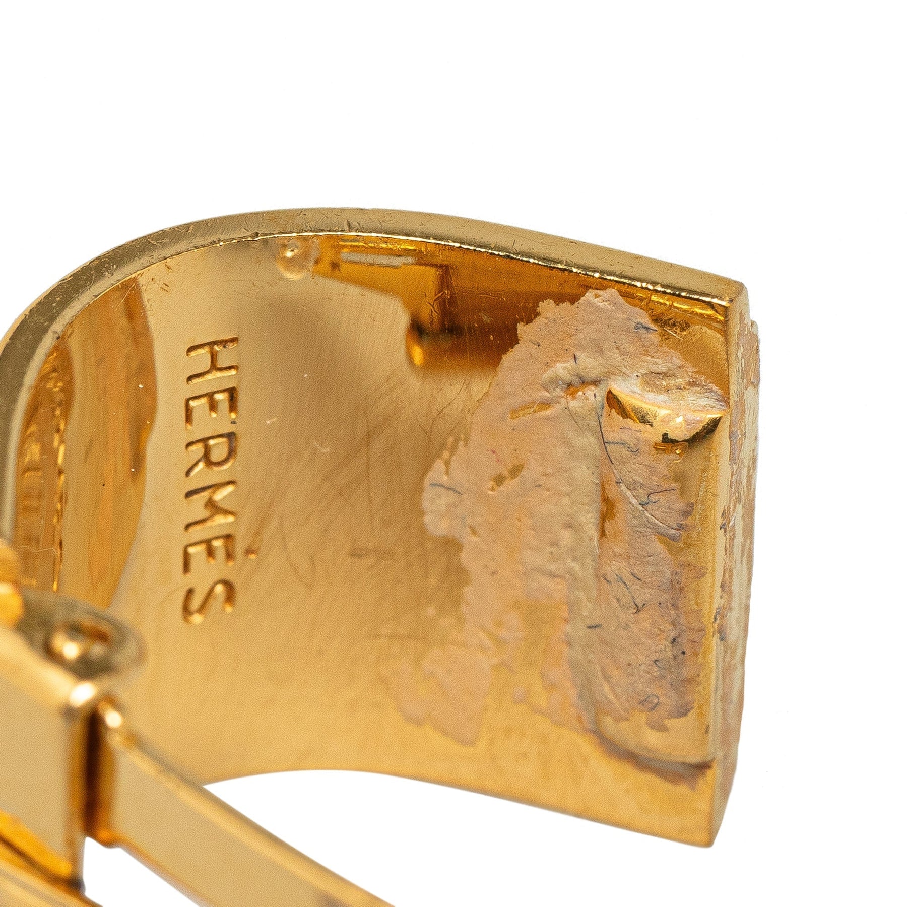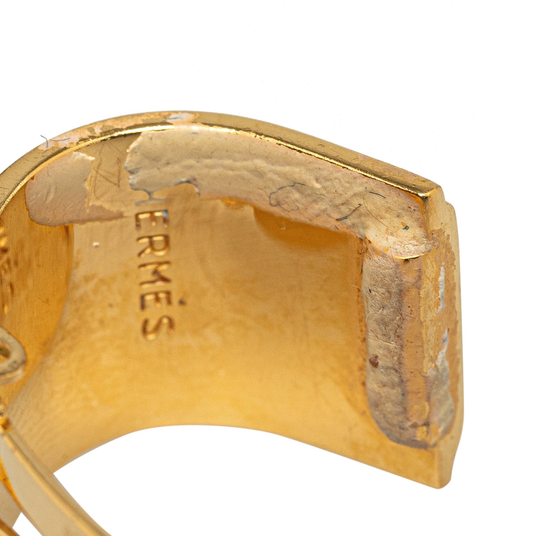 These earrings feature printed enamel and gold-tone hardware with a clip-on closure.