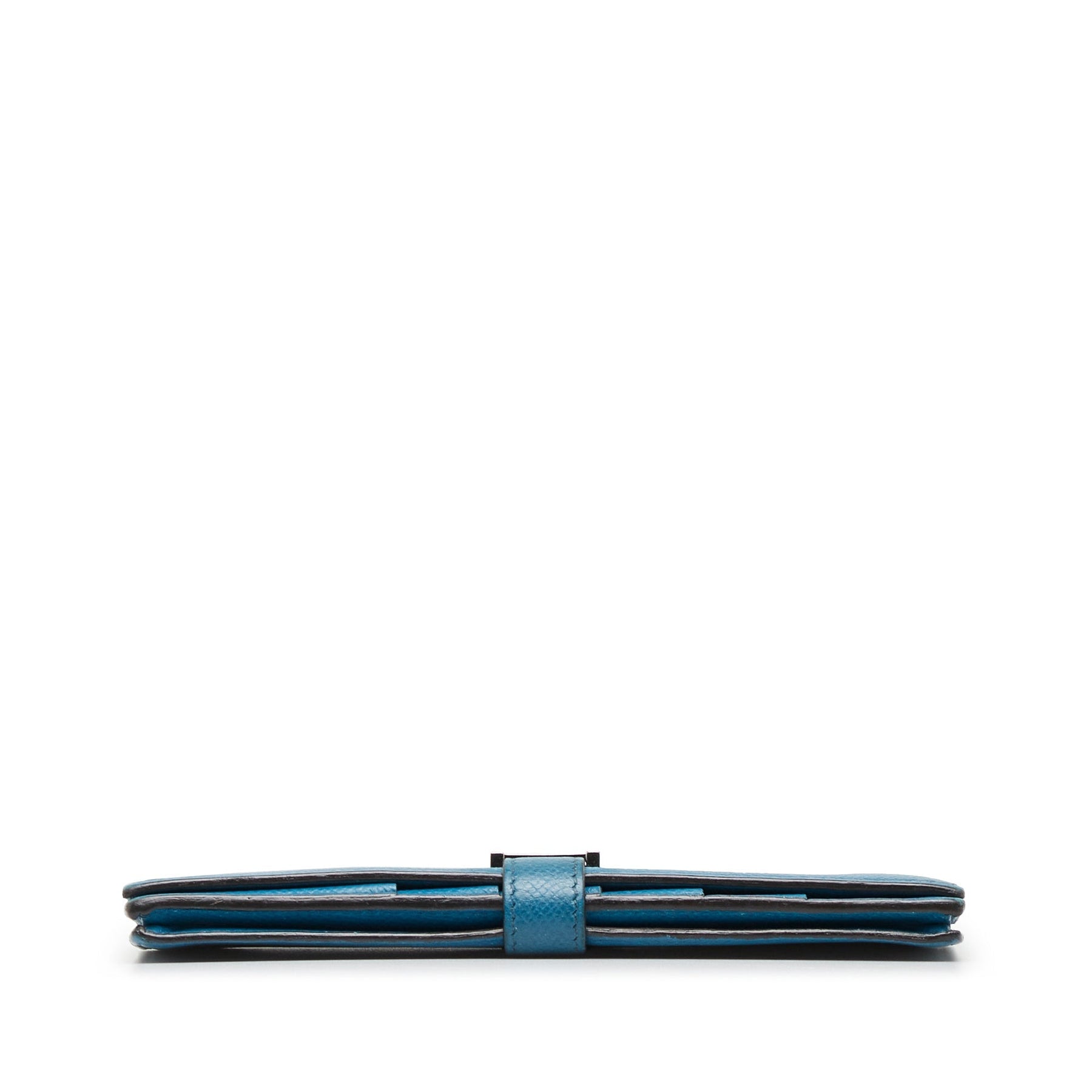The Bearn features a leather body, a flat leather strap with pull through closure, and interior zip and slip pockets.