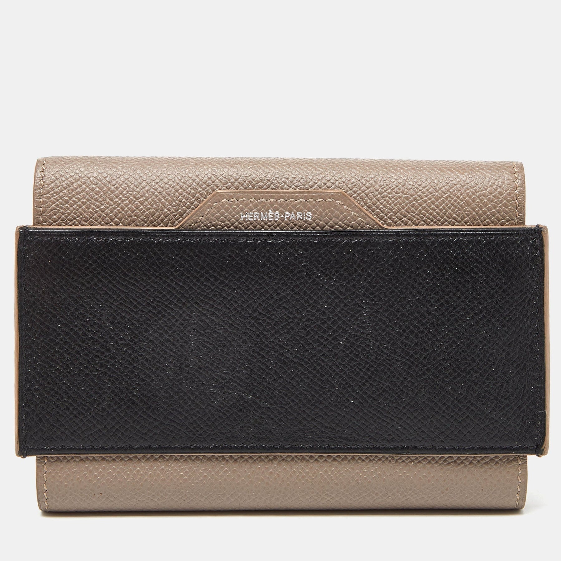 Hermes Etain/Black Epsom Leather Passant Compact Wallet