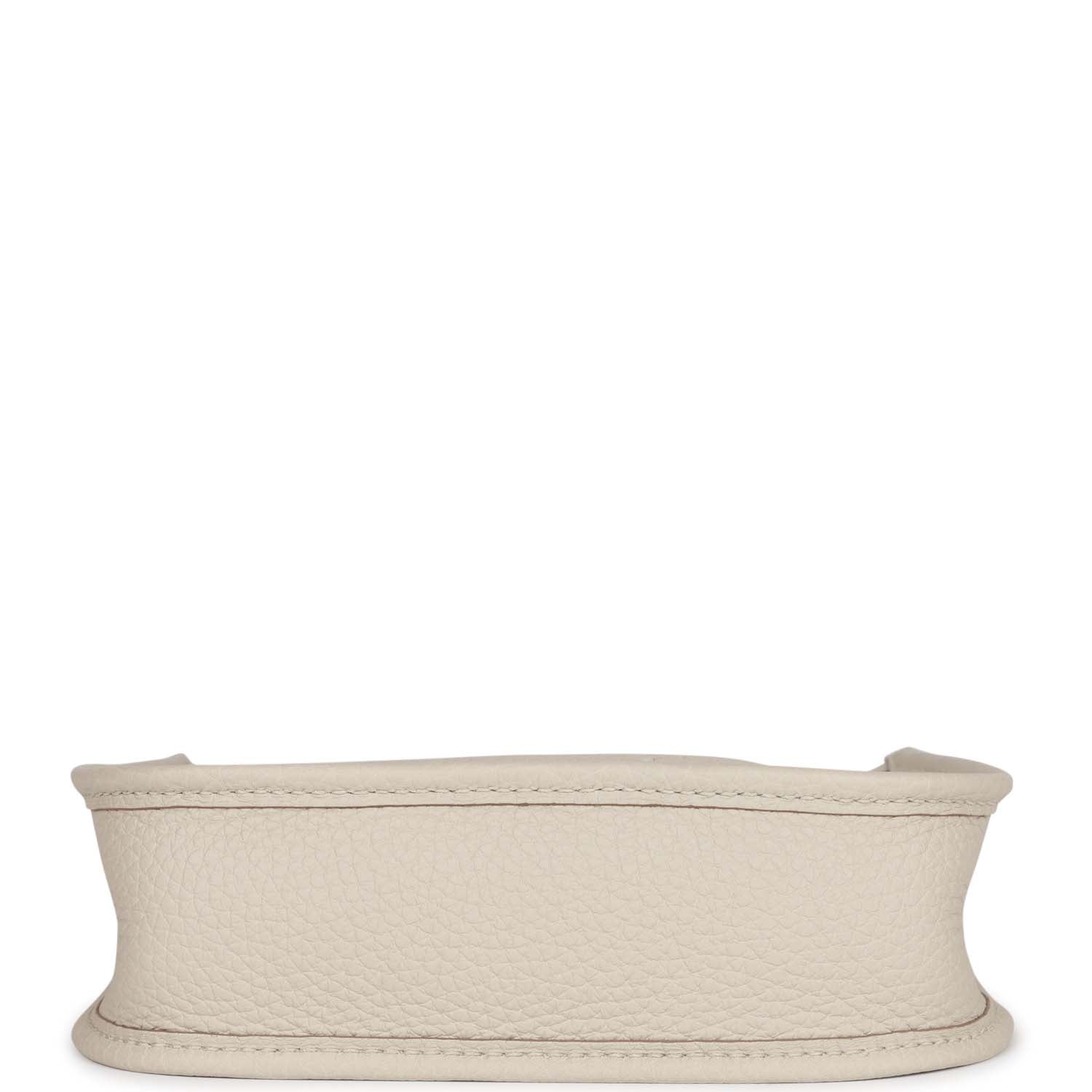 This Evelyne is in Beton clemence leather with palladium hardware and has tonal stitching, pull tab top closure and beton removable canvas and leather shoulder/crossbody strap.
