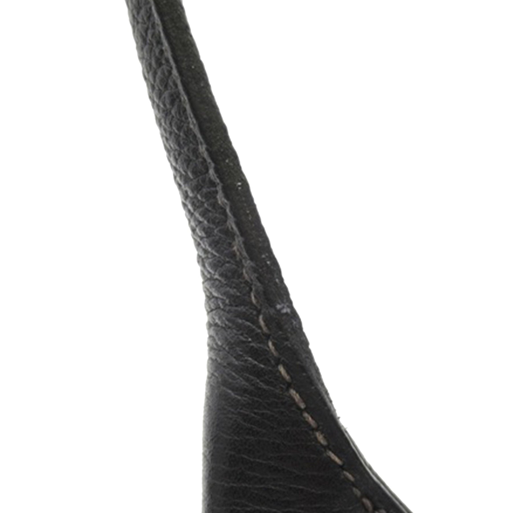 Trim 31 features an evergrain leather body, a flat leather shoulder strap, a top strap with a lobster claw closure, a top zip closure, and interior zip and slip pockets.