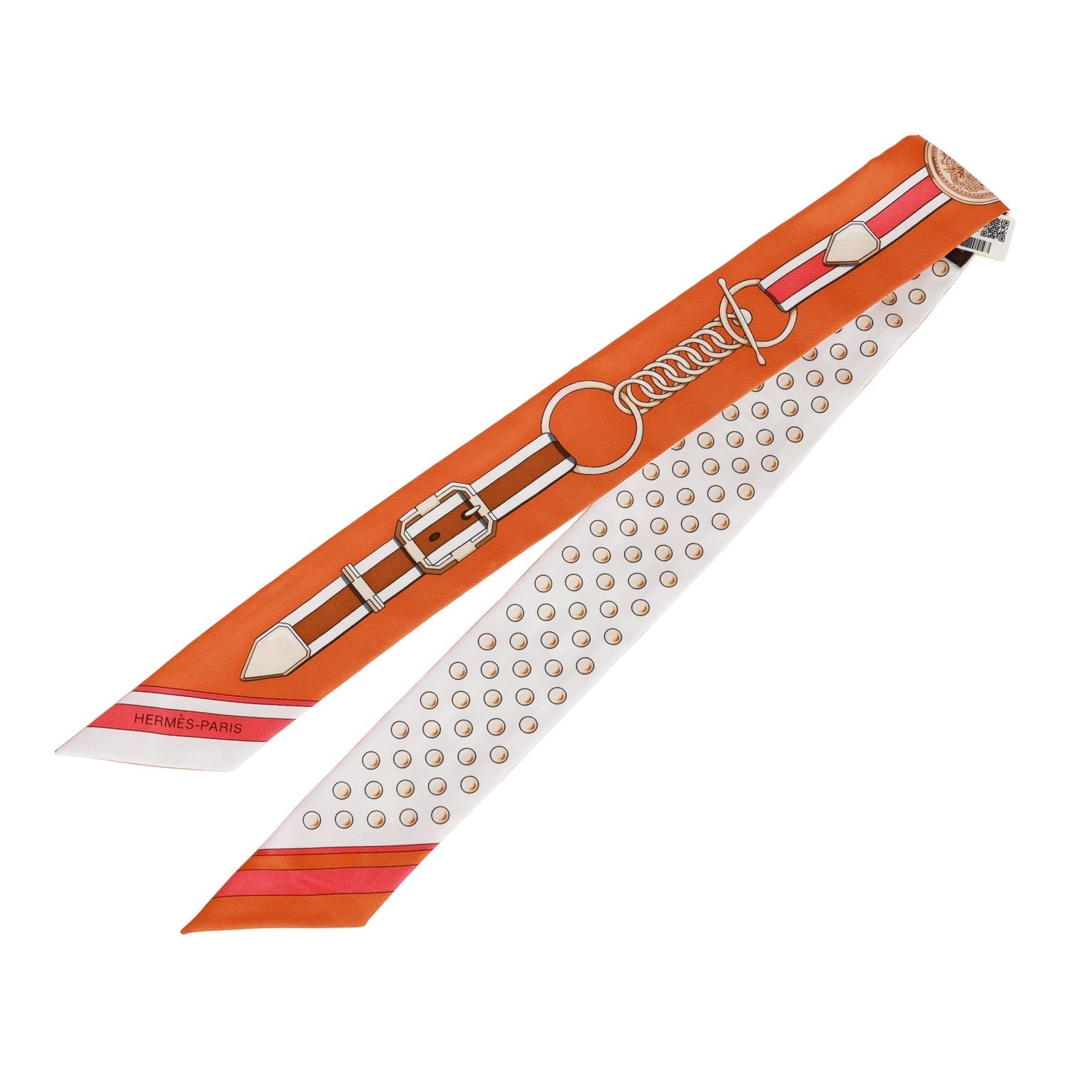 This silk twilly pair is in a gris acier colorway.