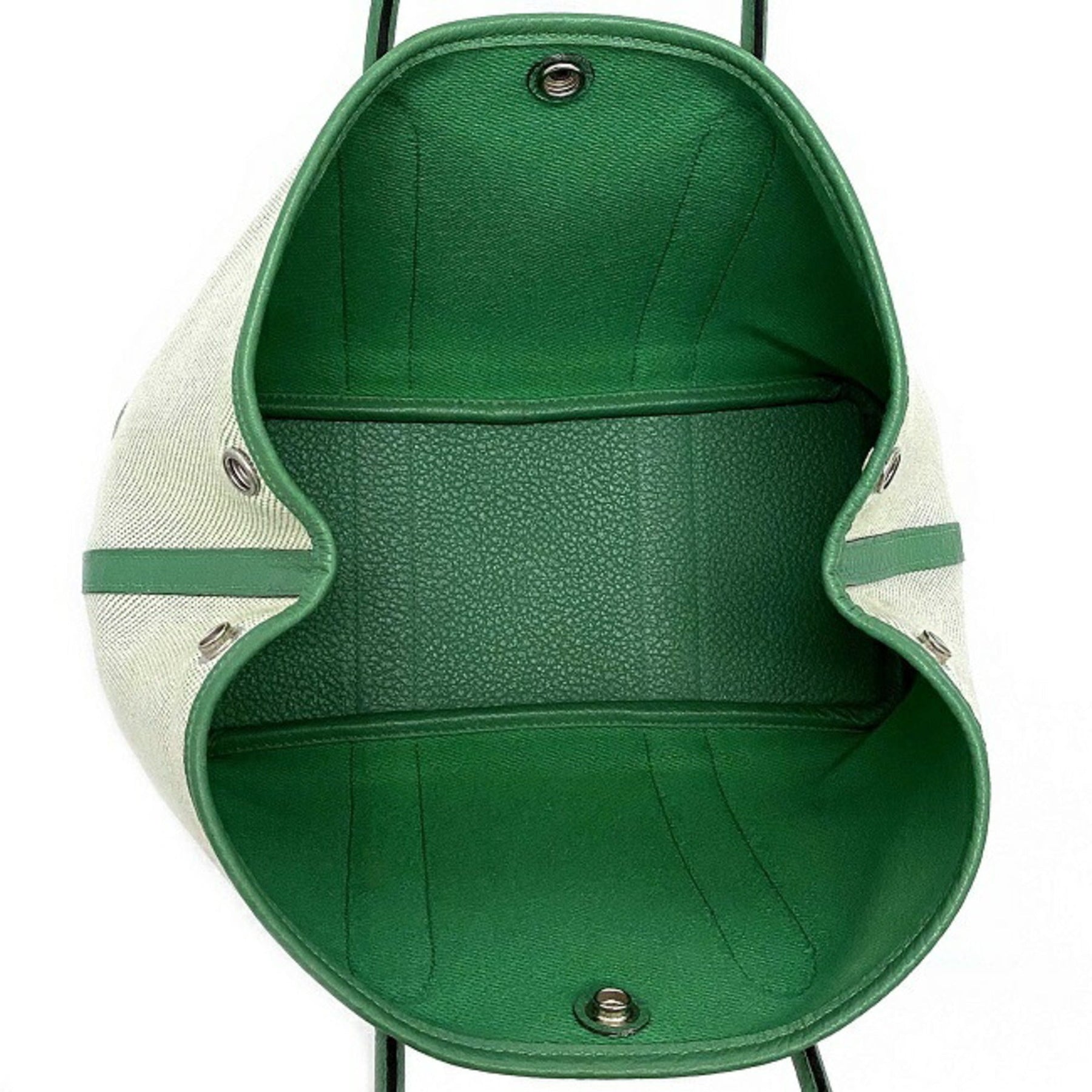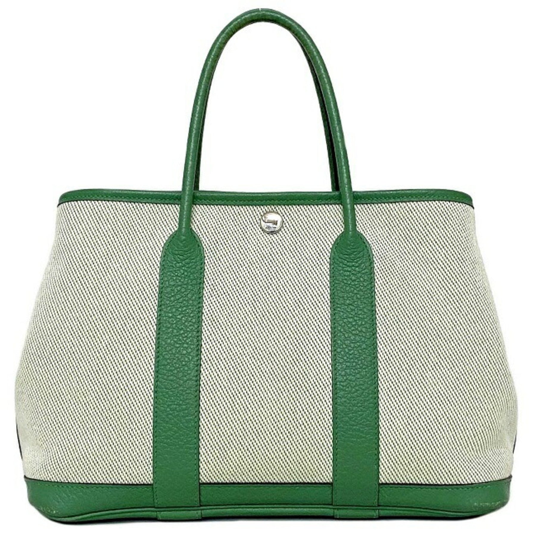 Hermes handbag garden TPM green toile ash country canvas leather P stamp made in 2012 HERMES tote bag ladies