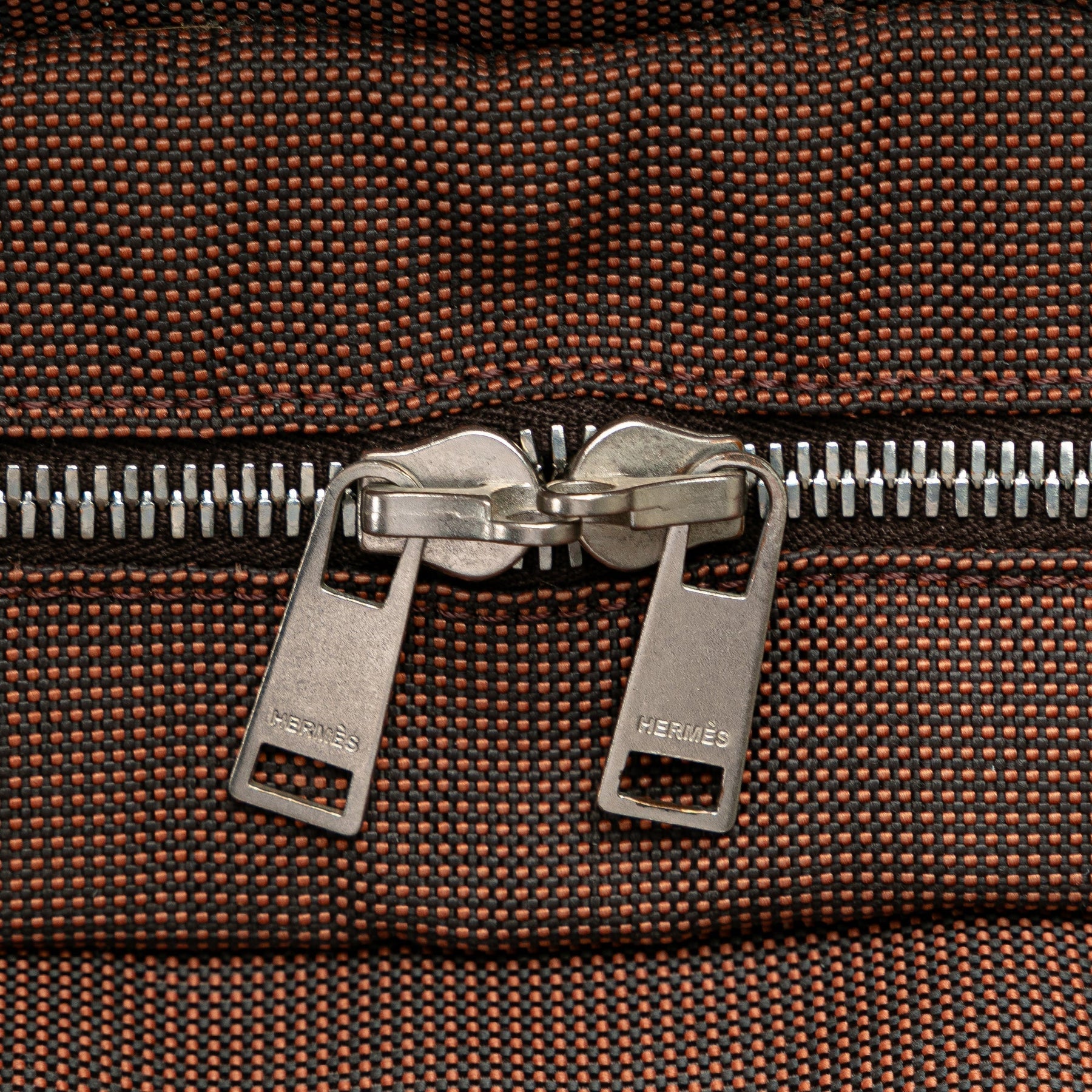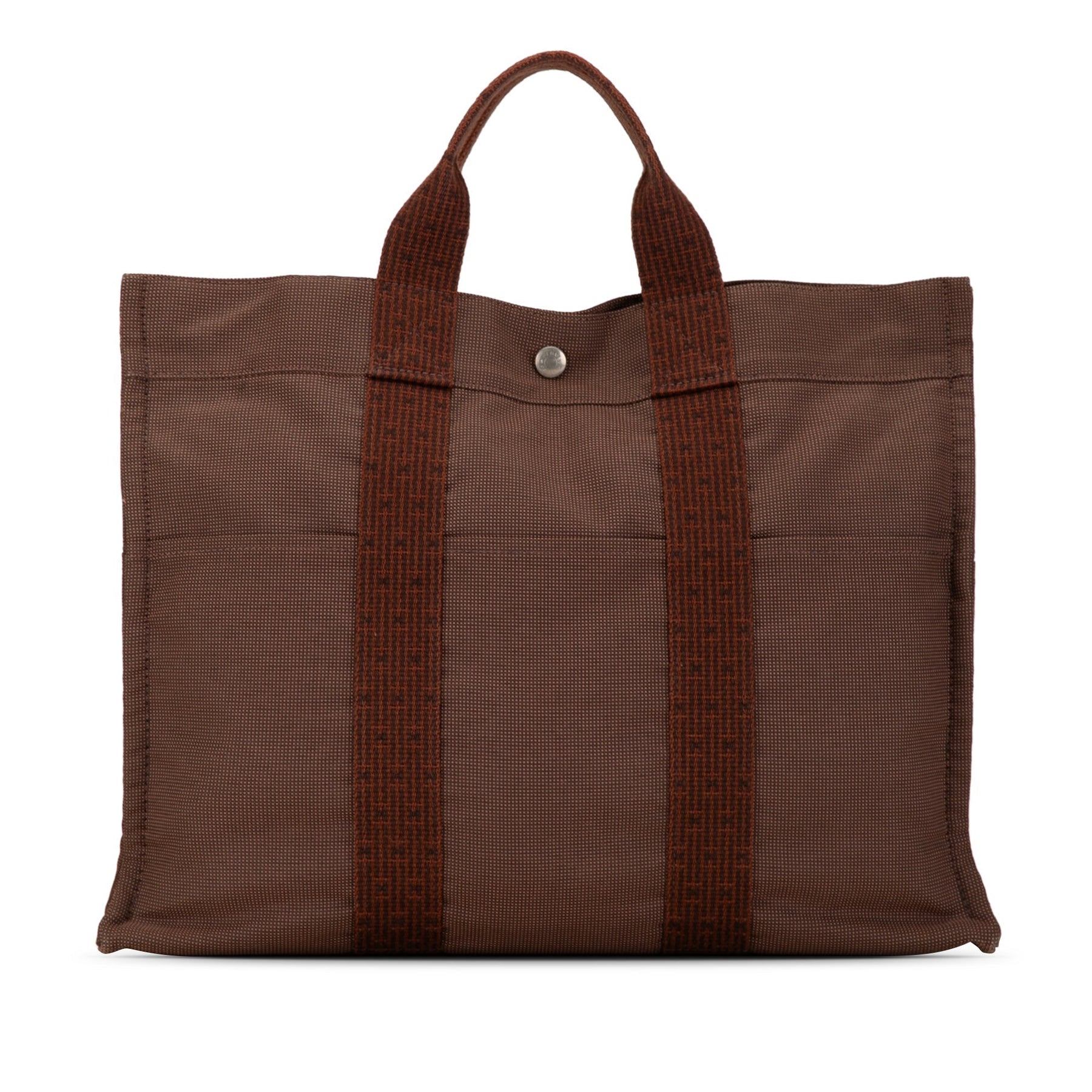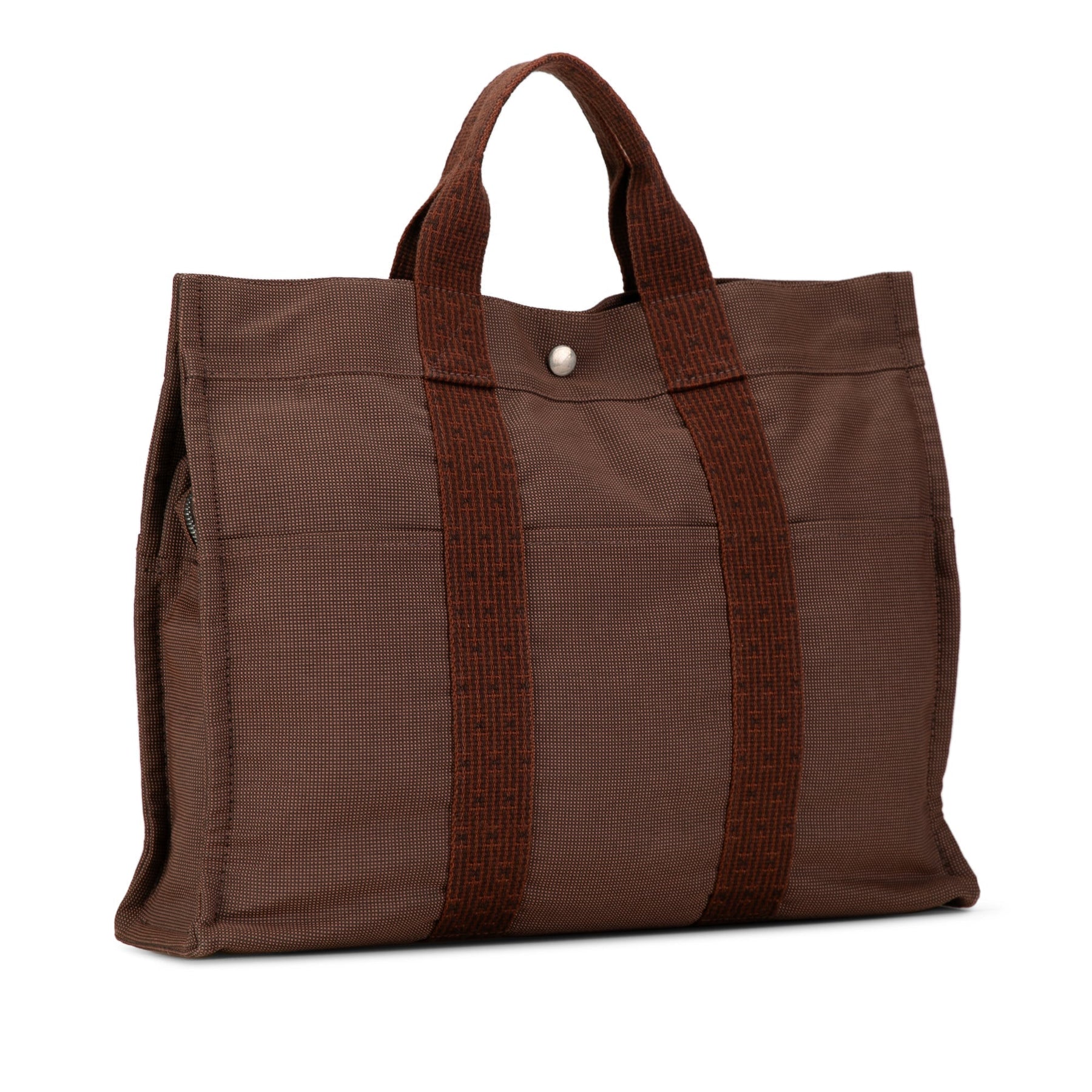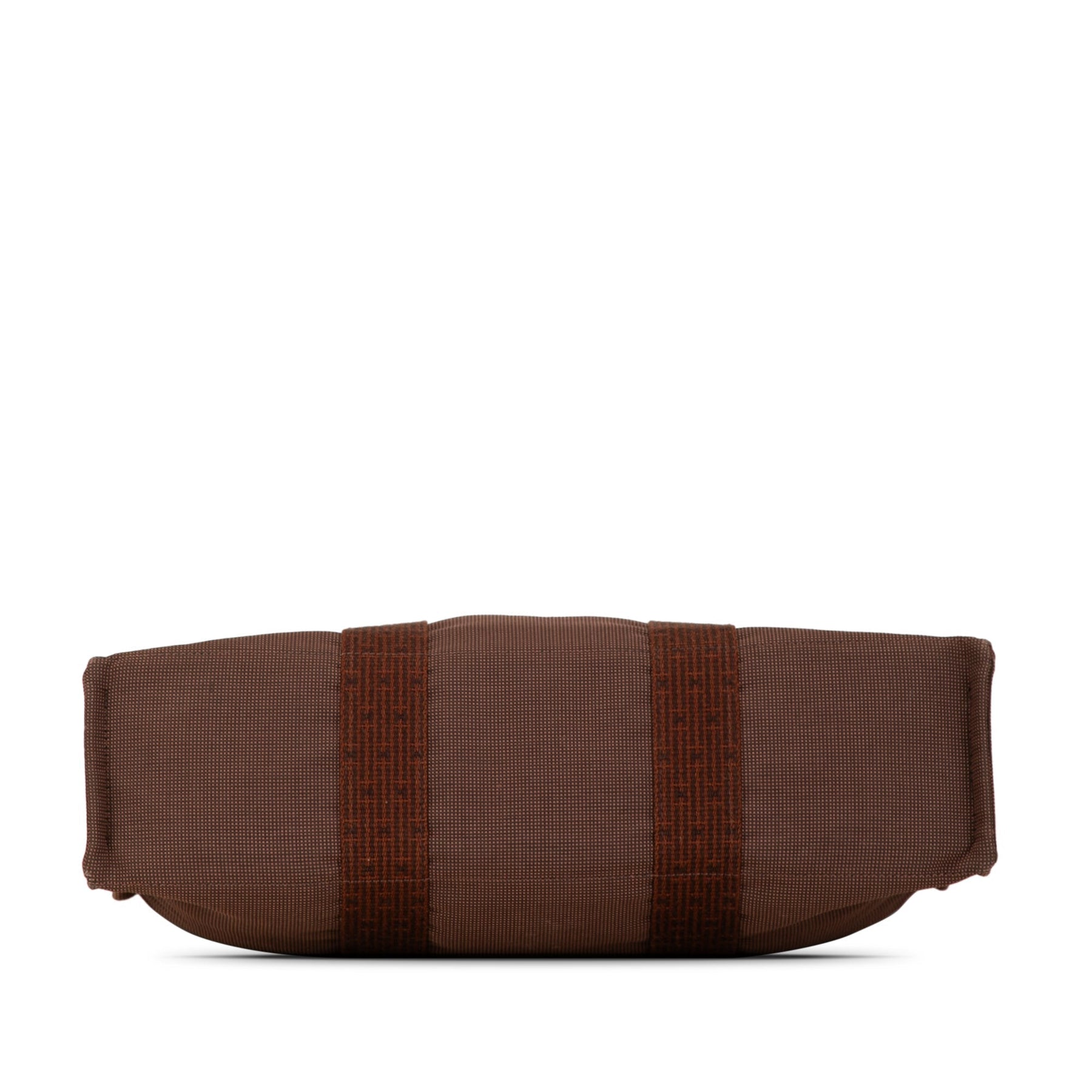 The Herline MM features a canvas body, flat handles, a top zip closure, exterior front and back slip pockets, and an interior slip pocket.