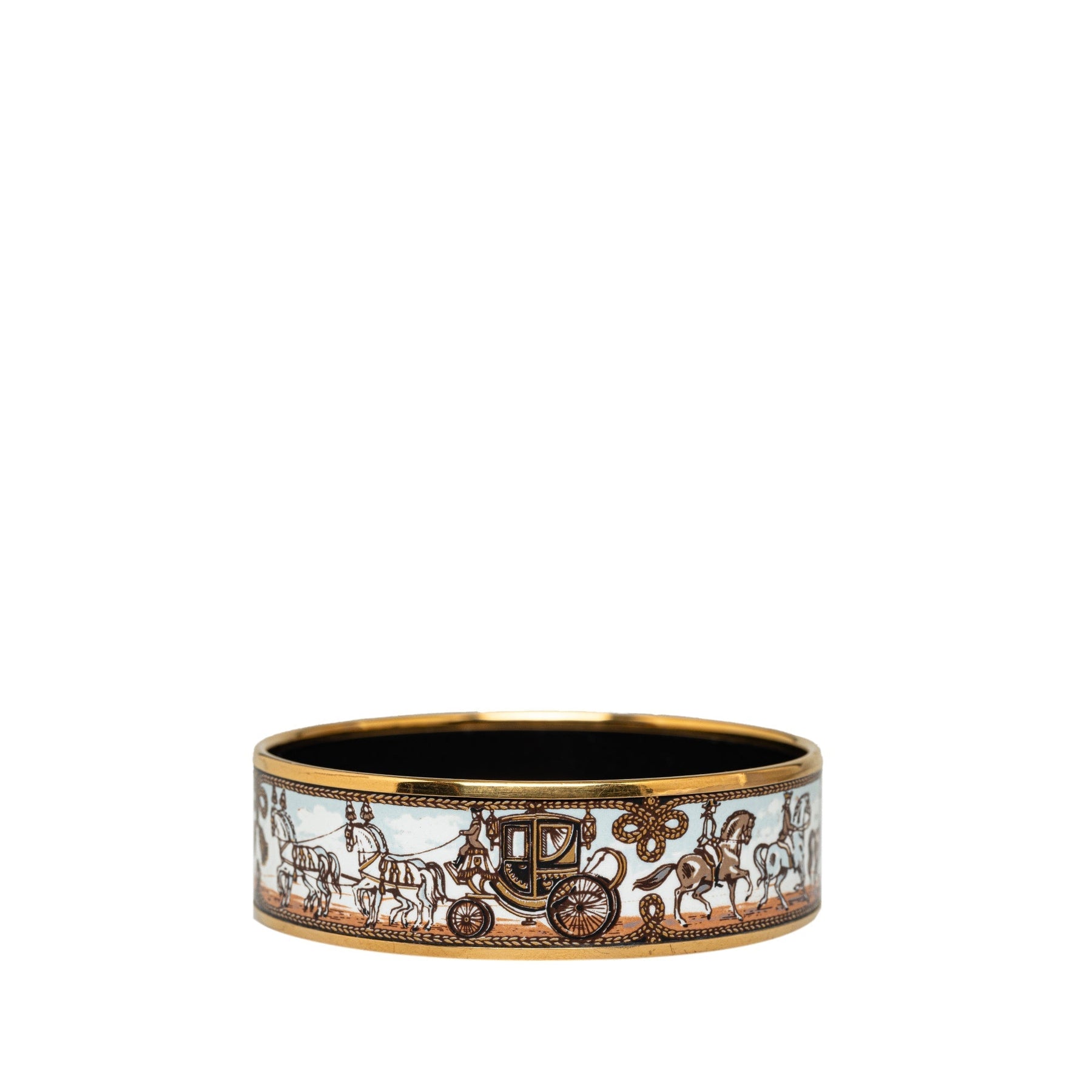 HERMES Horse Carriage Wide Enamel Bangle 65 Costume Bracelet