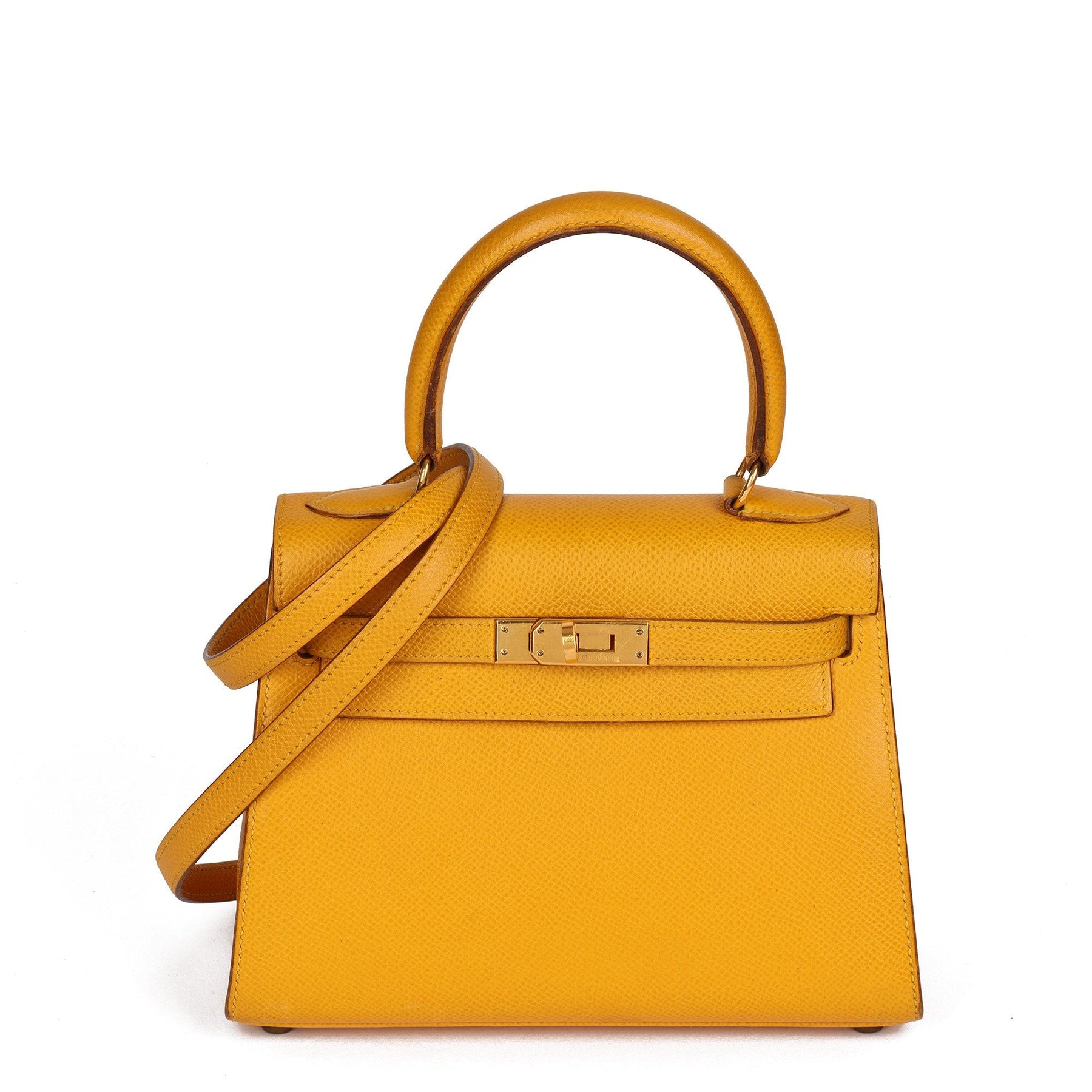 Hermes Jaune Courchevel Leather Kelly 20cm Sellier Shoulder Bag