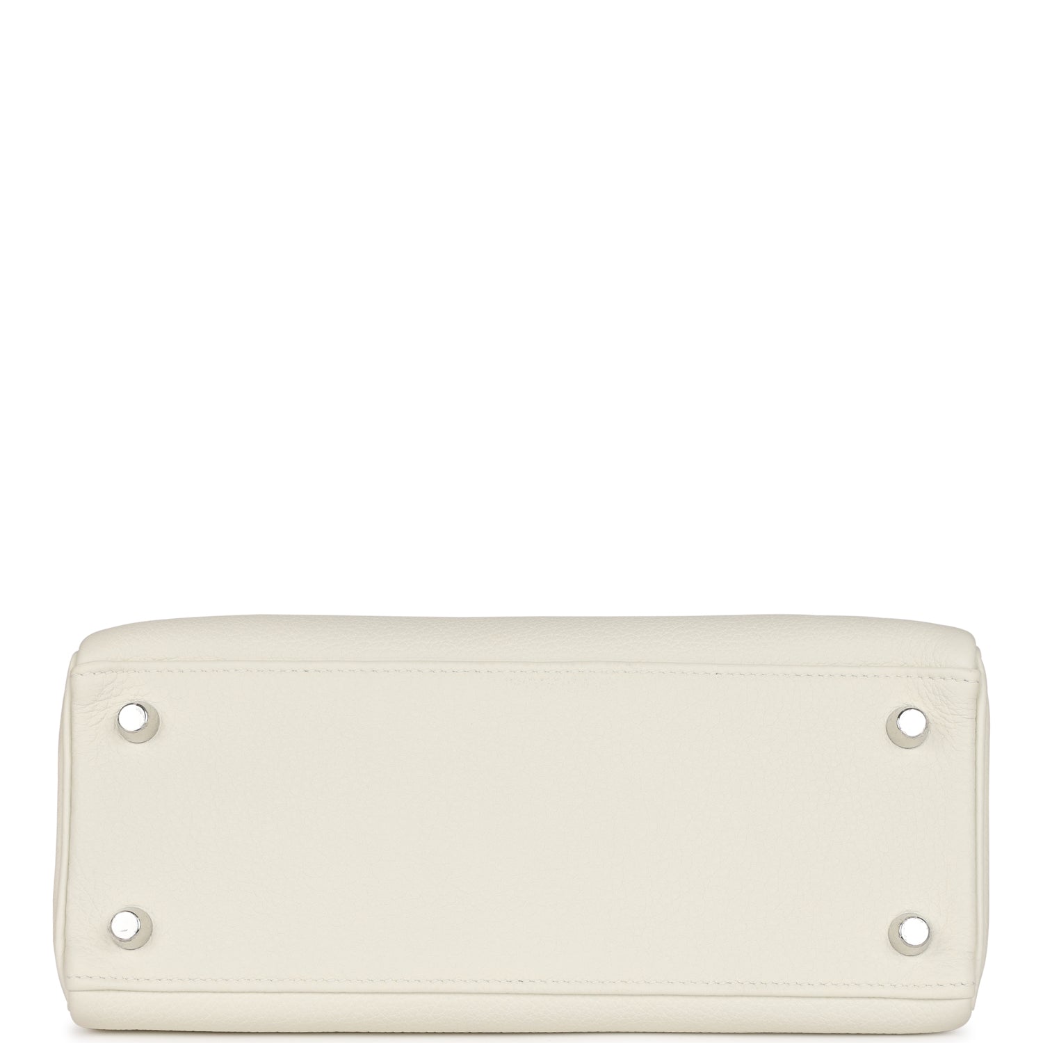 This Kelly, in the Retourne style, is in Mushroom togo leather with palladium hardware and has tonal stitching, two straps with front toggle closure, clochette with lock and two keys, single rolled handle and removable shoulder strap.