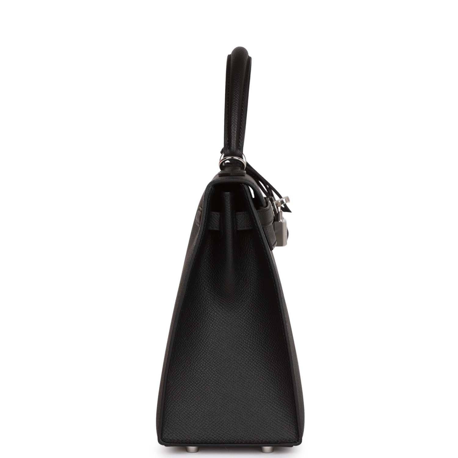 This Kelly, in the Sellier style, is in Black epsom leather with palladium hardware and has tonal stitching two straps with front toggle closure, clochette with lock and two keys, a single rolled handle and removable shoulder strap.