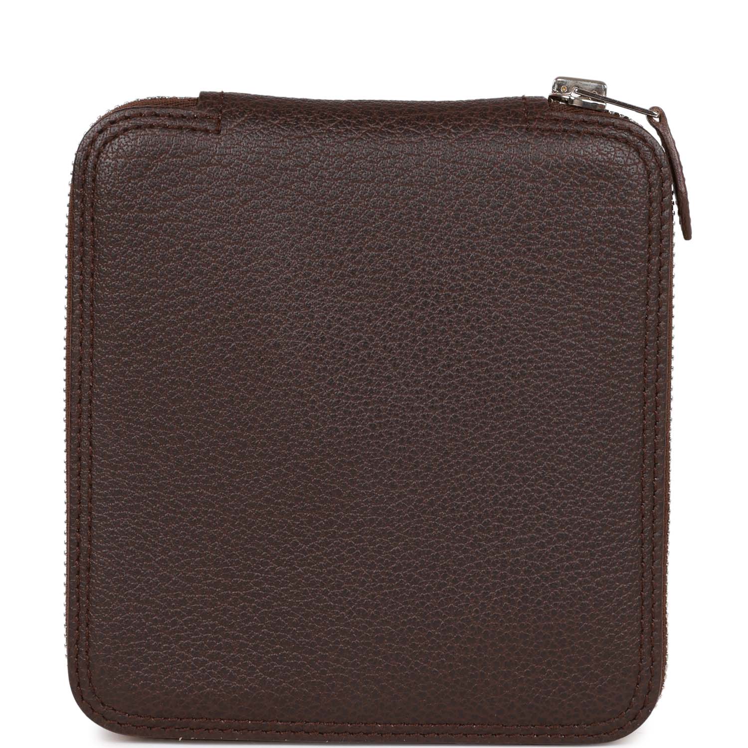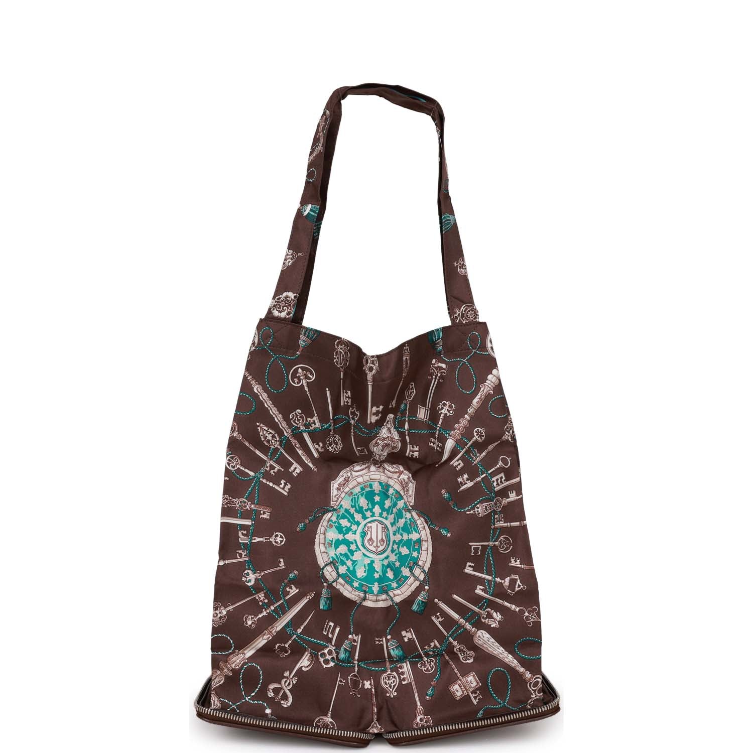 This Silky Pop Tote is in the "Les Cles" style in a Chocolate colorway in a Chocolate Evercolor pouch with Palladium hardware and has tonal stitching, zip around closure, and two shoulder straps in printed silk fabric.