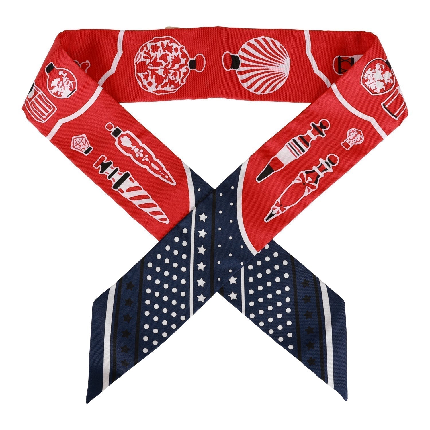Hermes "Les Falcons" silk twilly in a rouge colorway.