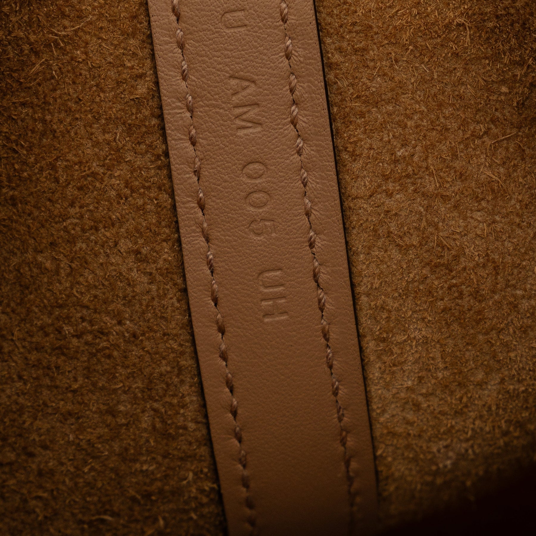 The Picotin Lock features a Swift leather body in Chai color, flat leather handles, and an open top with strap and buckle closure. Comes with box and dust bag.
