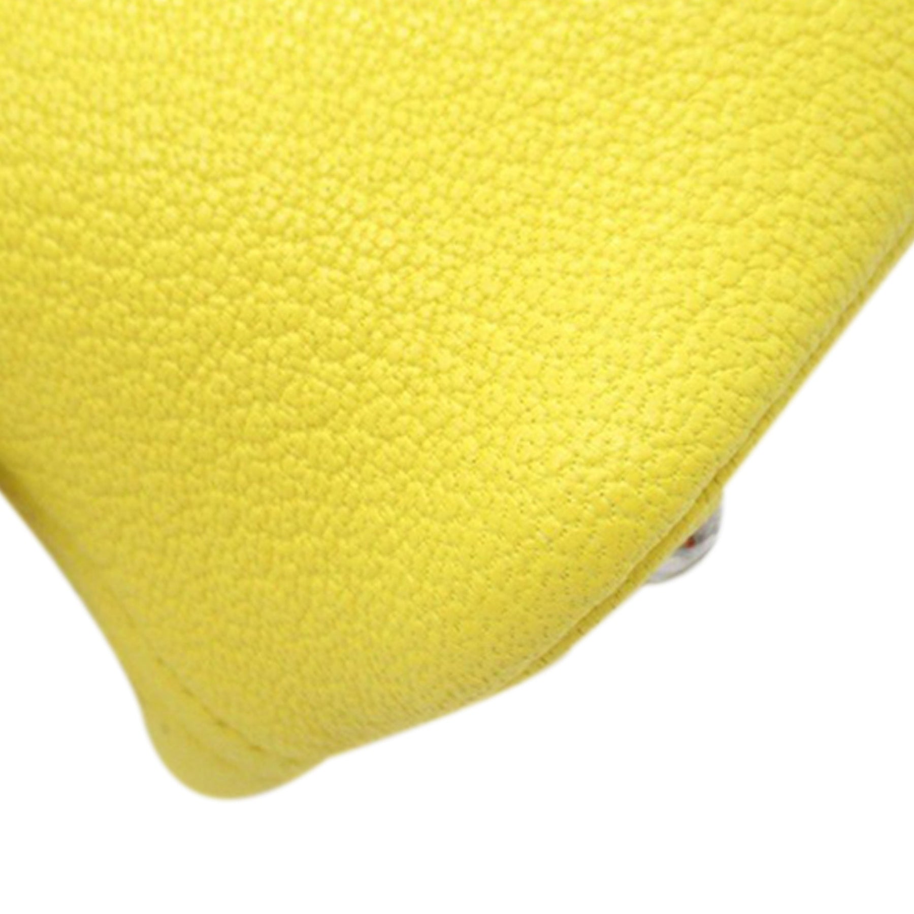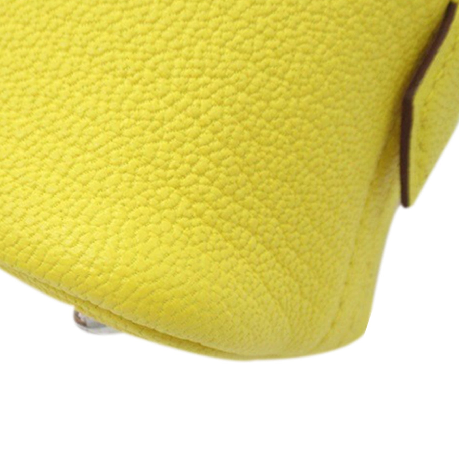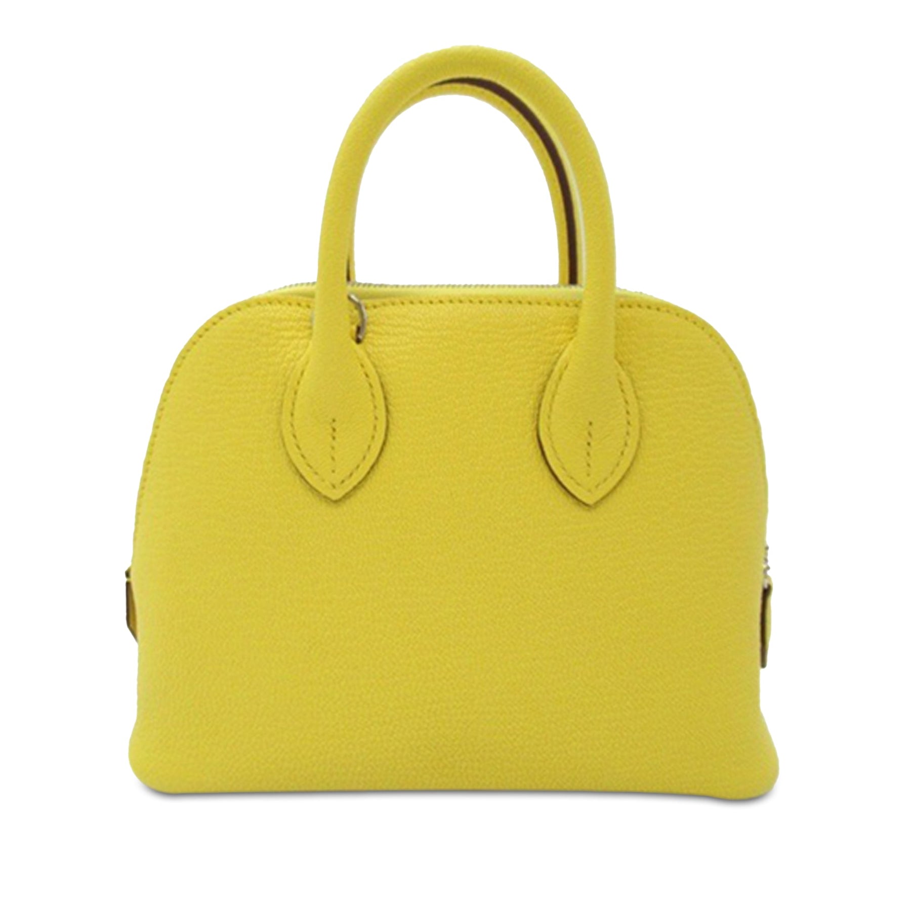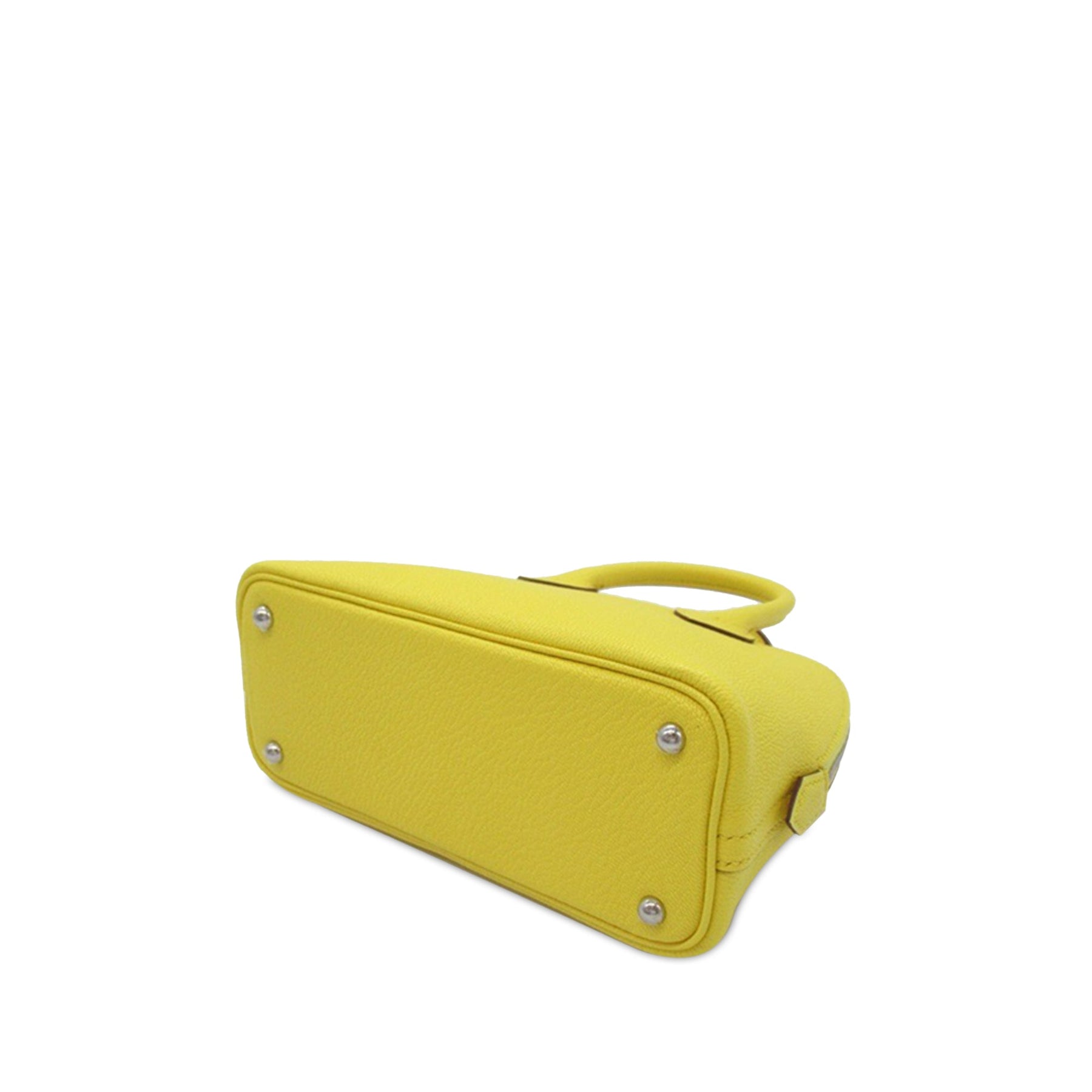 The Mini Bolide 1923 features a Chevre leather body in Lime color, rolled leather handles, a detachable flat leather strap, a top zip closure, and an interior slip pocket. Comes with box and dust bag.
