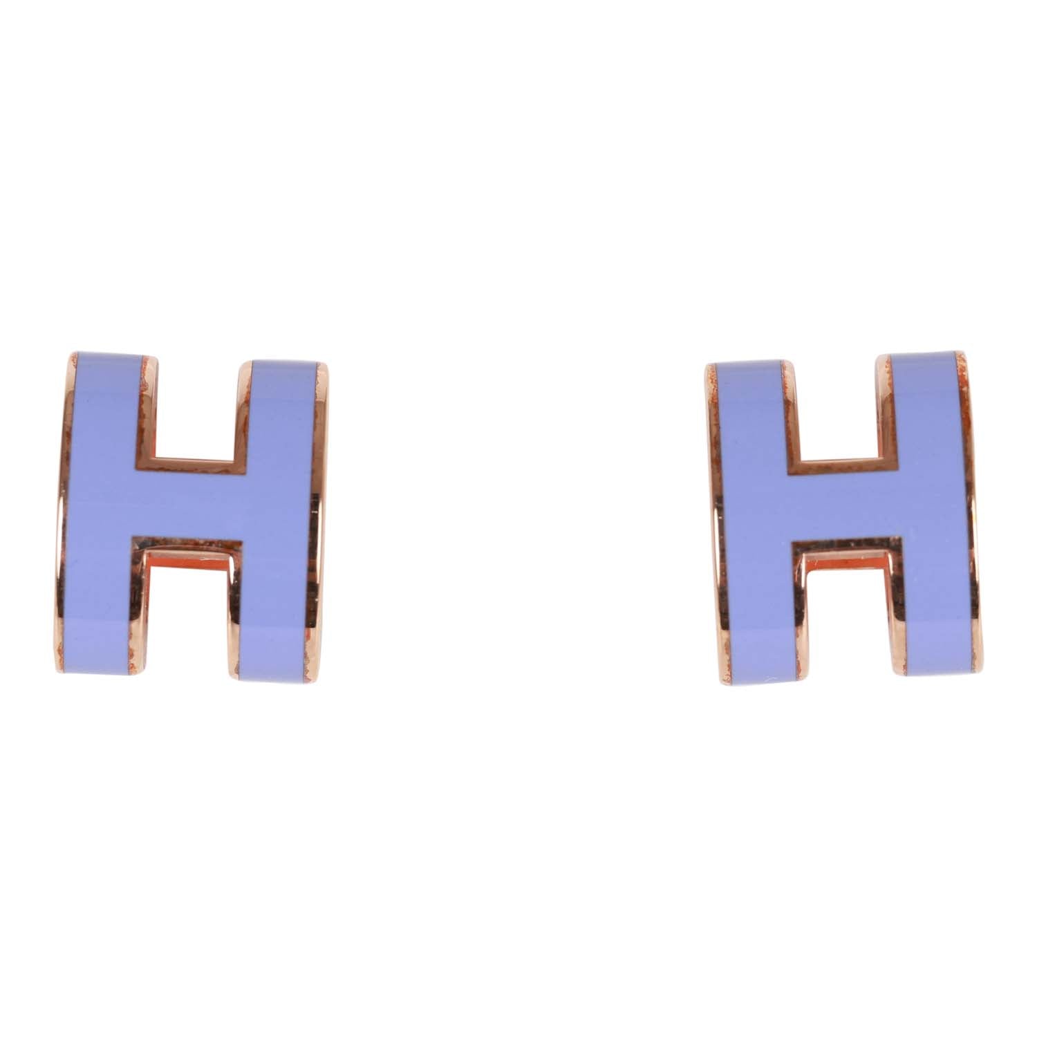 Hermes Mini Pop H earrings in lacquered Rose Gold earrings in lilac