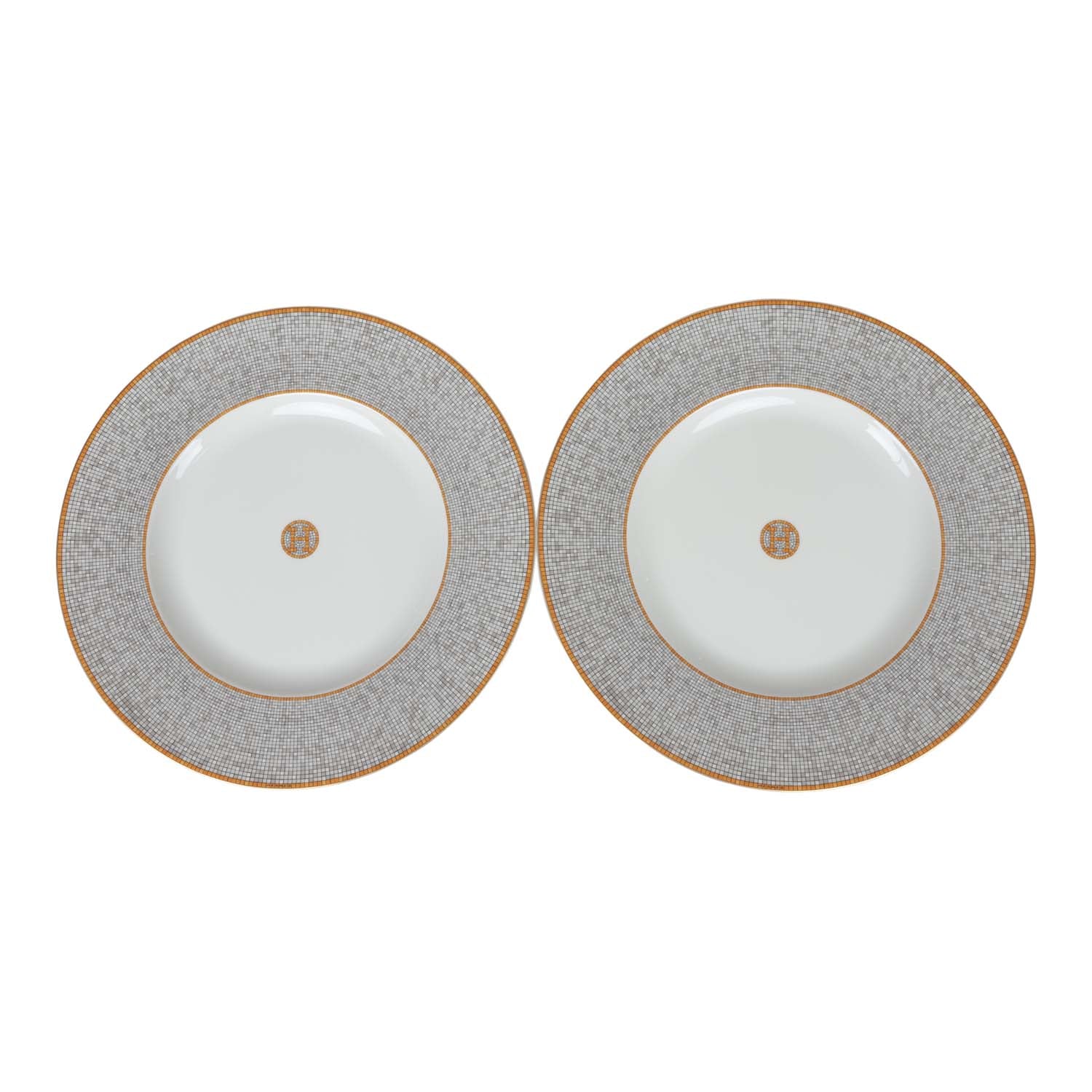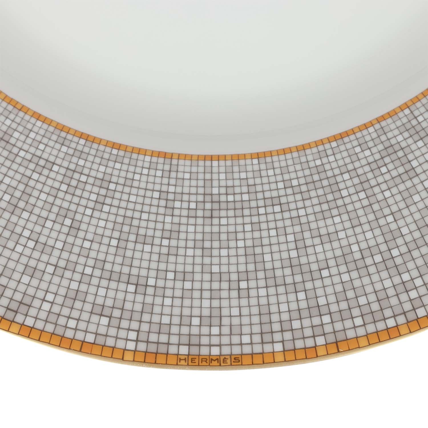 This "Mosaique Au 24" presentation plate is in gold and grey porcelain.