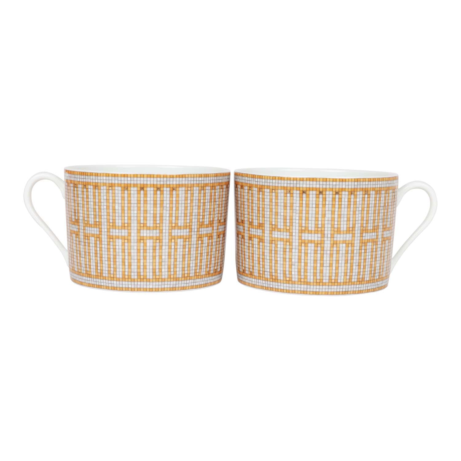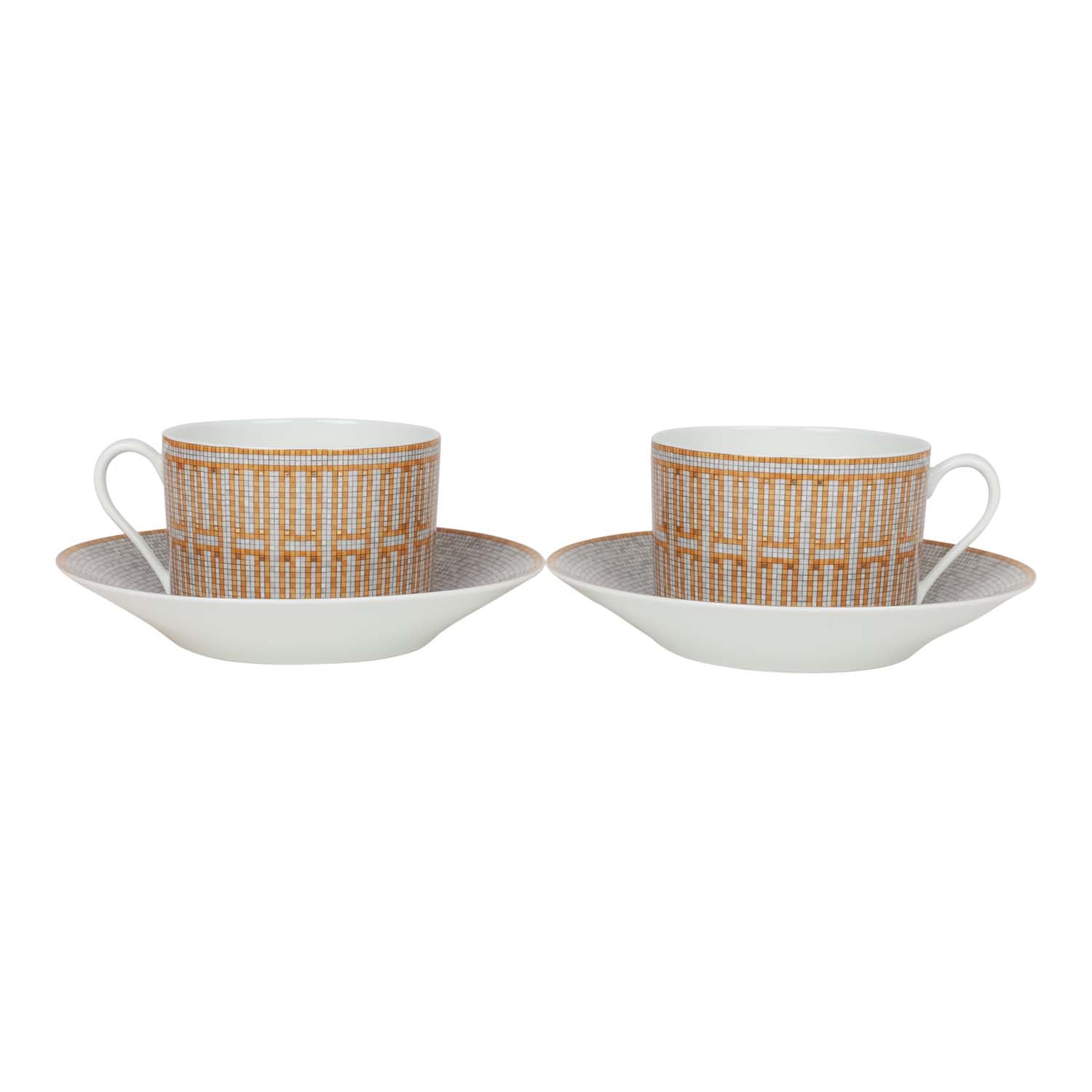 Top quality Hermes "Mosaique Au 24" Gold Porcelain Tea Cup And Saucer Set