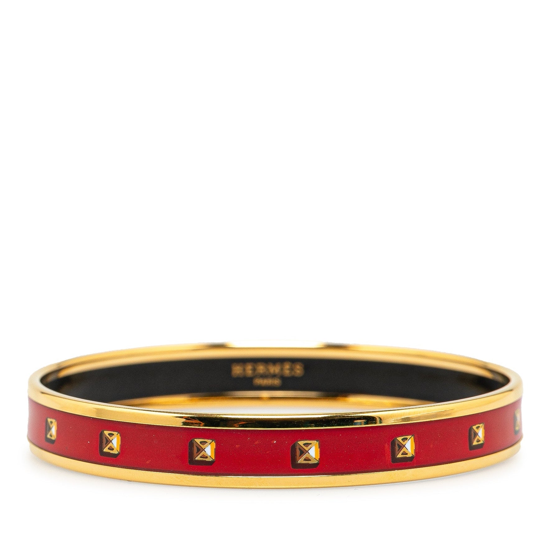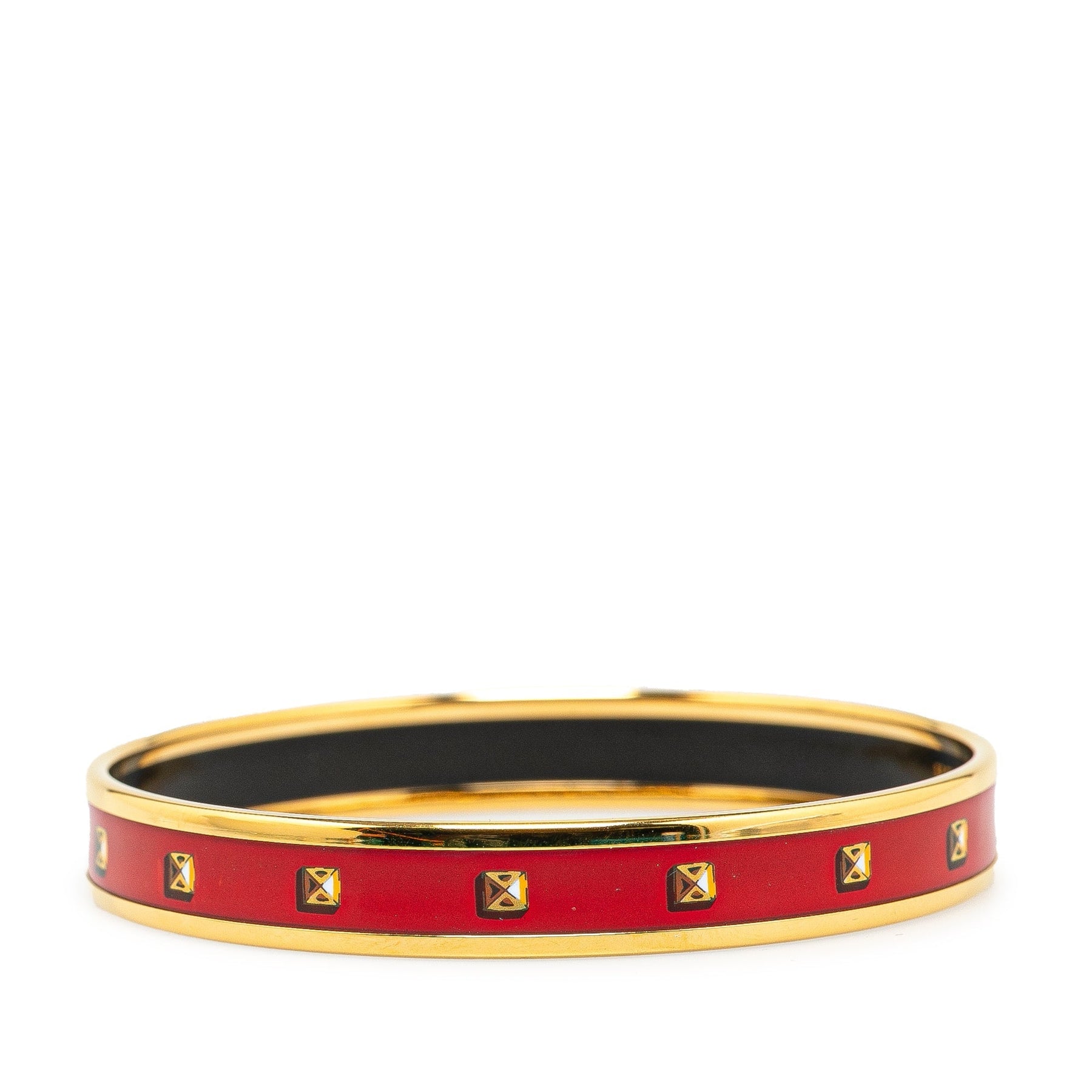 Hermes Narrow Medor Print Enamel Bangle 65 Costume Bracelet