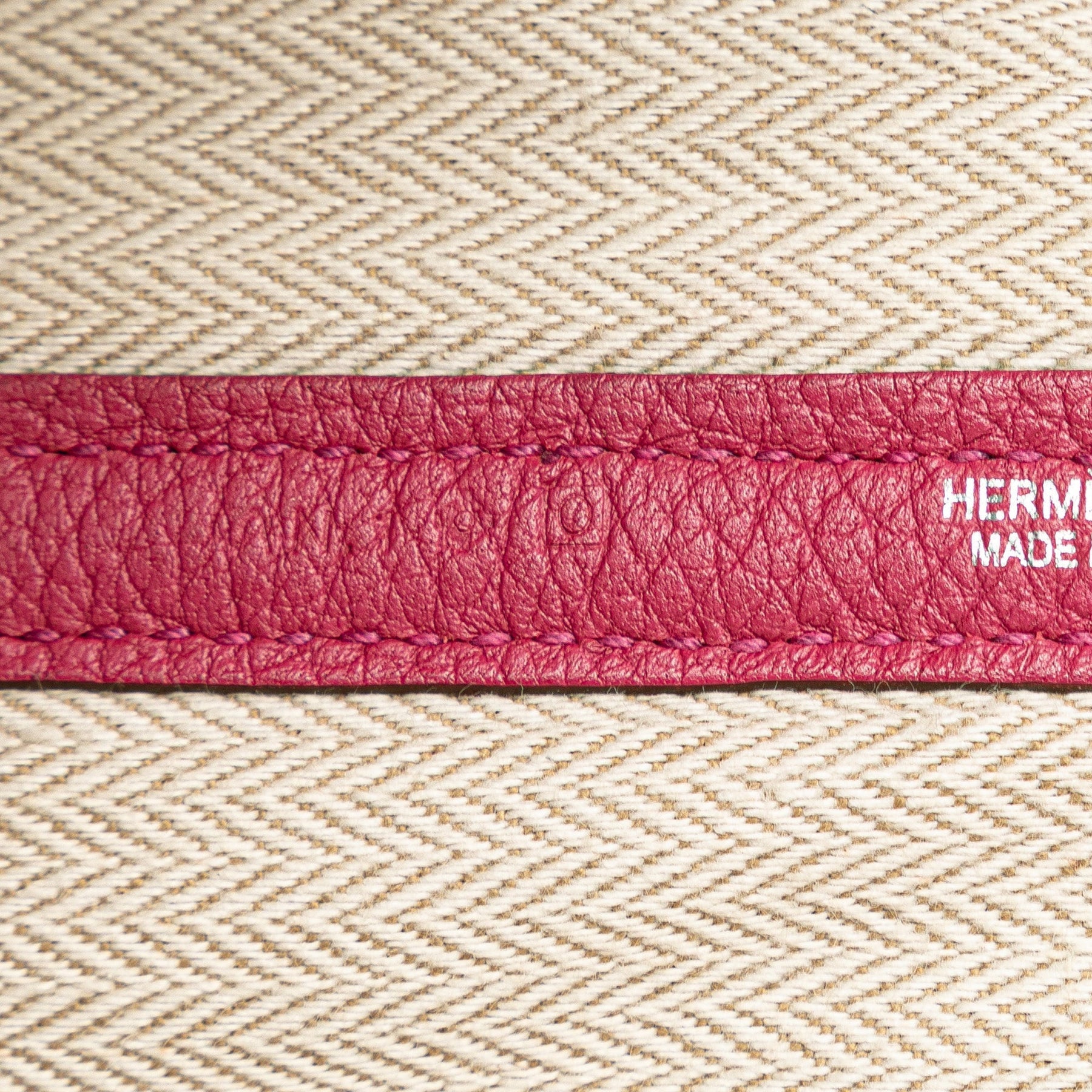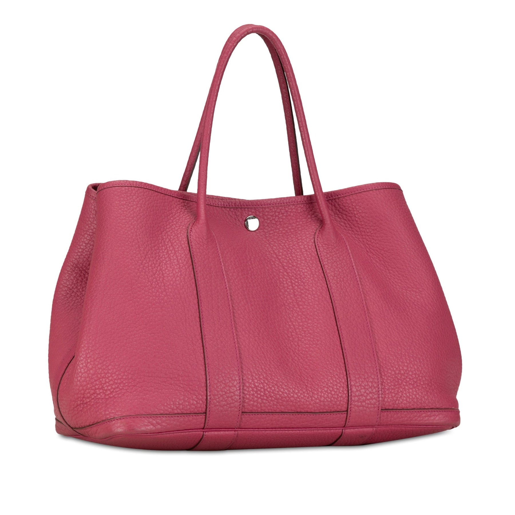 The Garden Party 36 features a negonda leather body, rolled leather handles, an open top with snap closure, and an interior zip pocket. Comes with dust bag