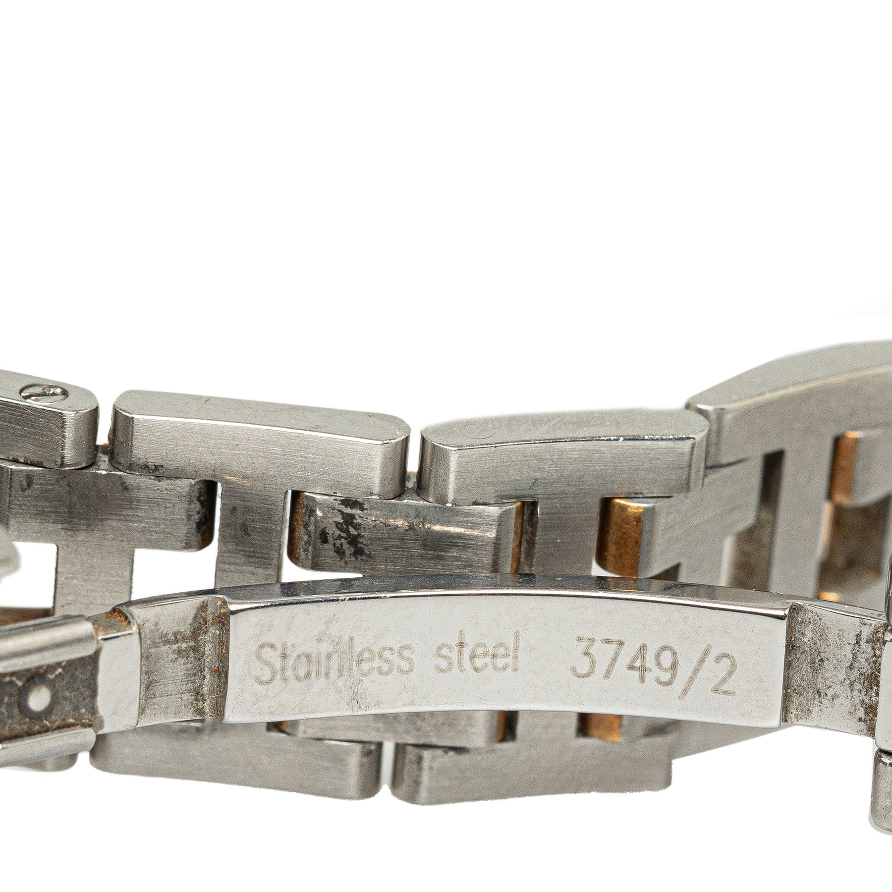 The Arceau watch features a stainless steel and gold-plated body, and a quartz movement.