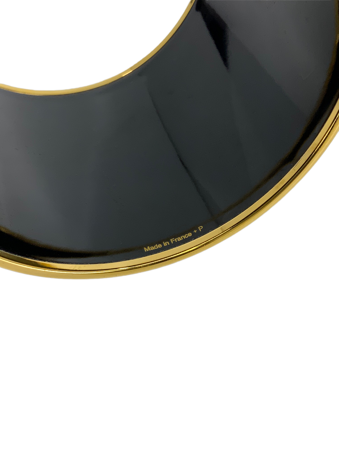 We the ity of this stunning Hermes Ribbon Extra Wide Printed Enamel Bracelet 65 crafted from beautiful peach, green, orange, red and mulitcolored enamel and gold-tone hardware. Featuring the signature oversized ribbon motif.
