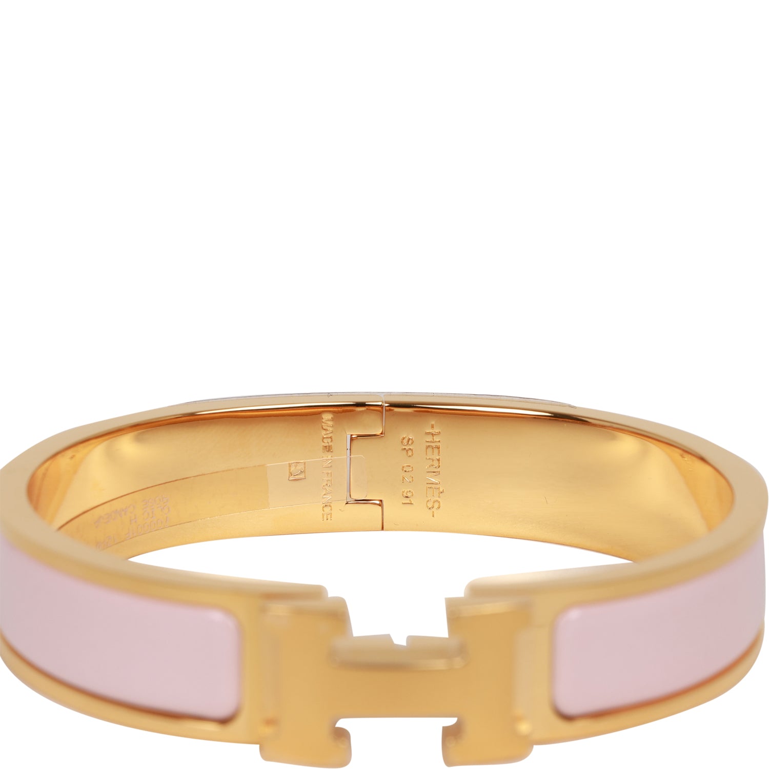 Hermes narrow Clic Clac H bracelet in Rose Dragee enamel with gold plated hardware in size PM.