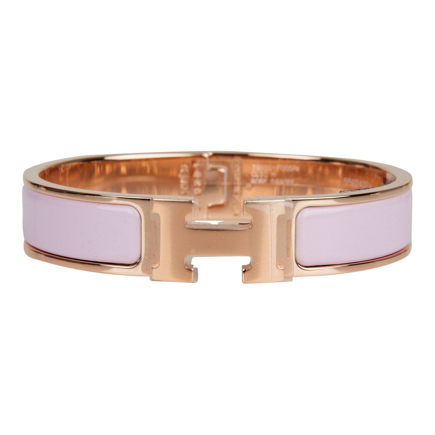 Top quality Hermes Rose Dragee Clic Clac H Narrow Enamel Bracelet PM RGHW