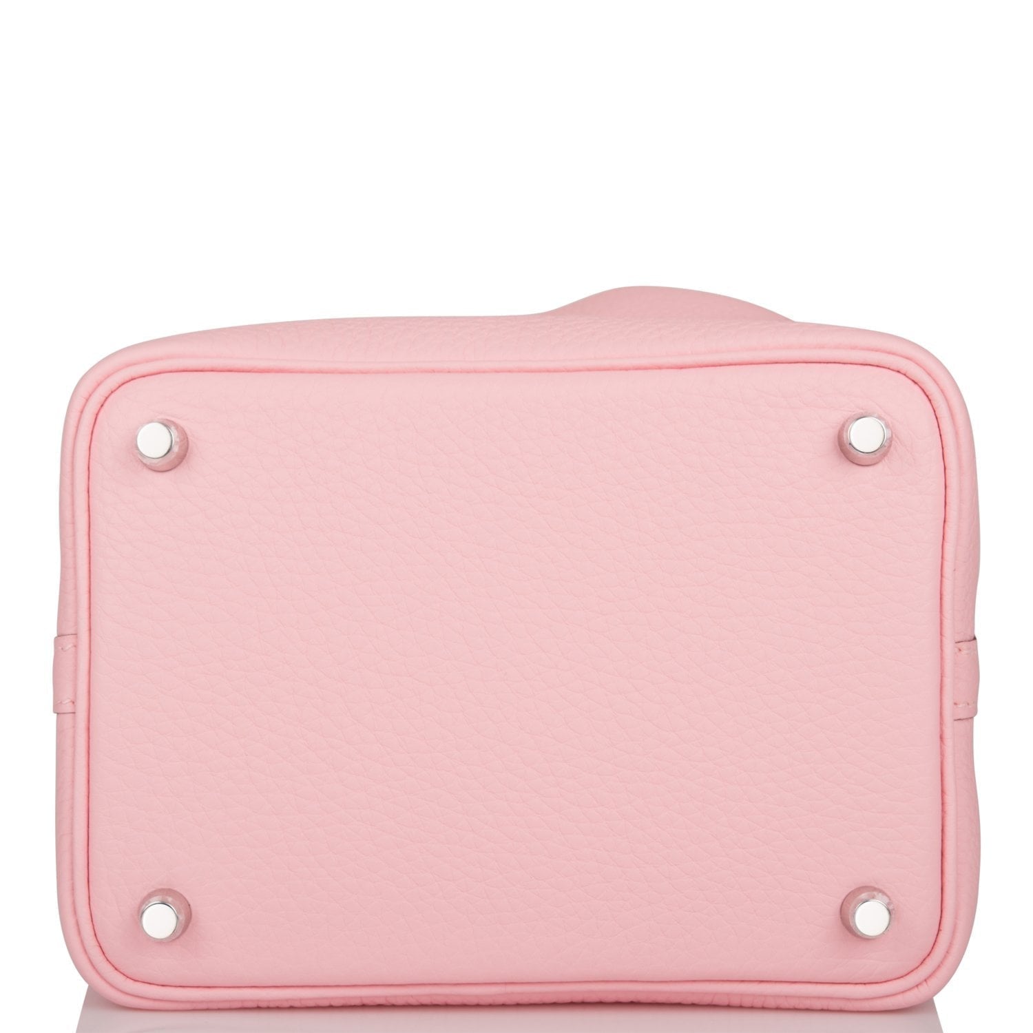 This Picotin Lock is in Rose Sakura clemence leather with palladium hardware and has tonal stitching with two top handles.