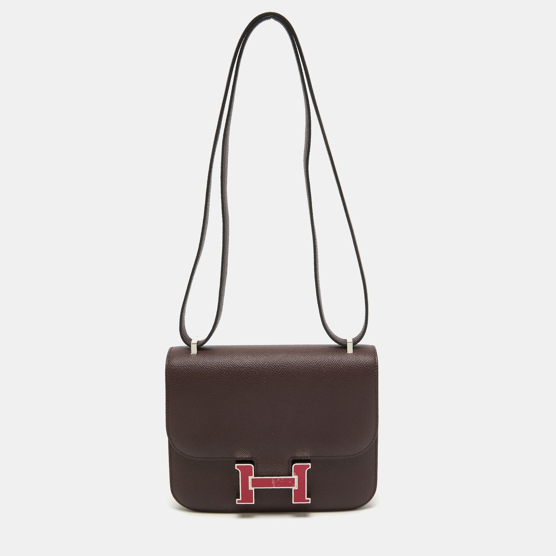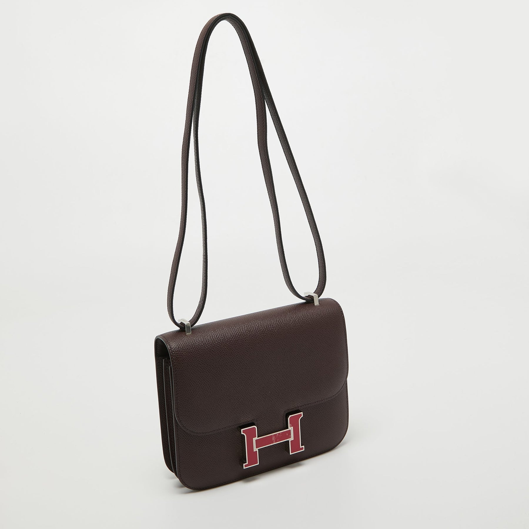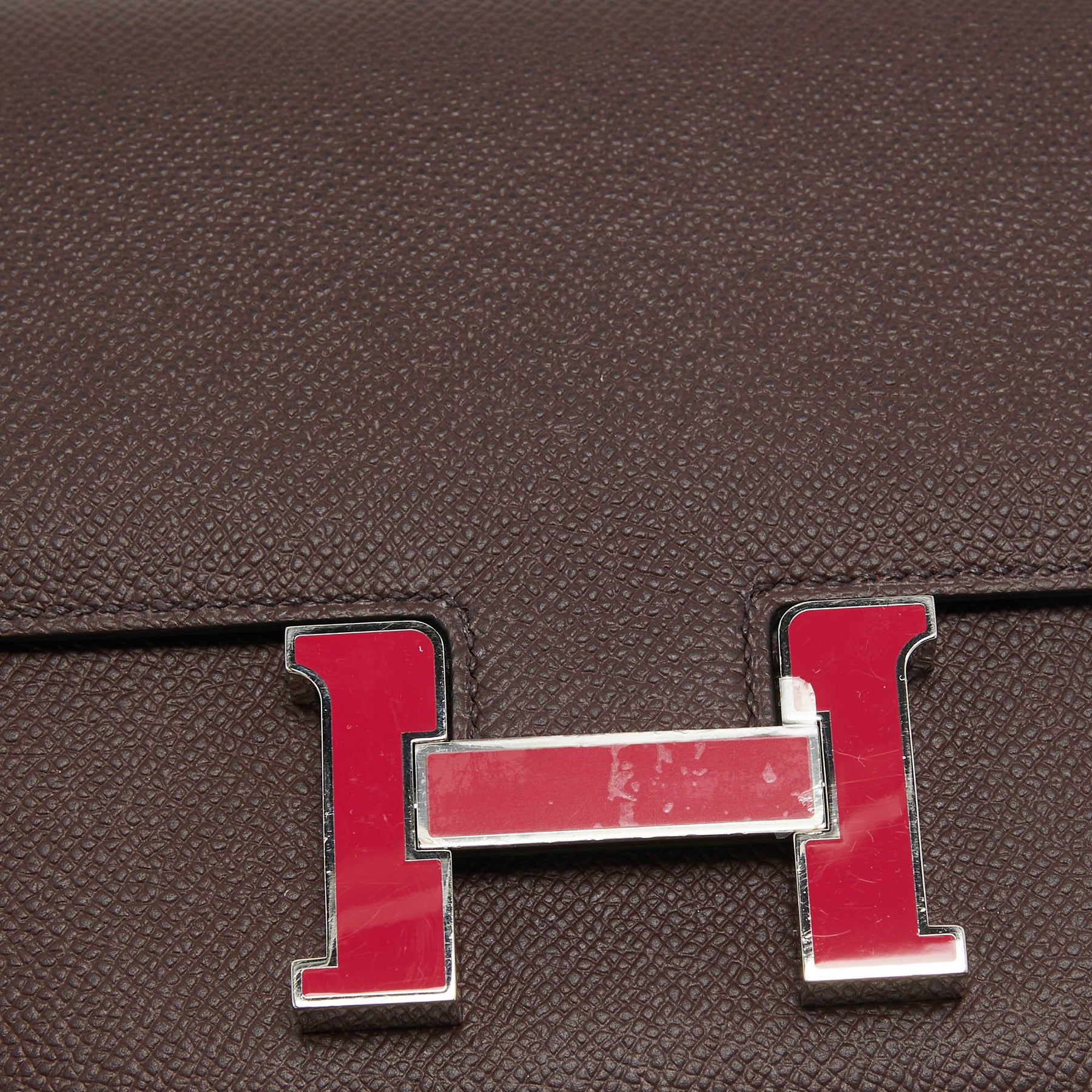 HERMES Rouge Sellier Epsom Leather Framboise Enamel Palladium Finish Constance 18 Bag