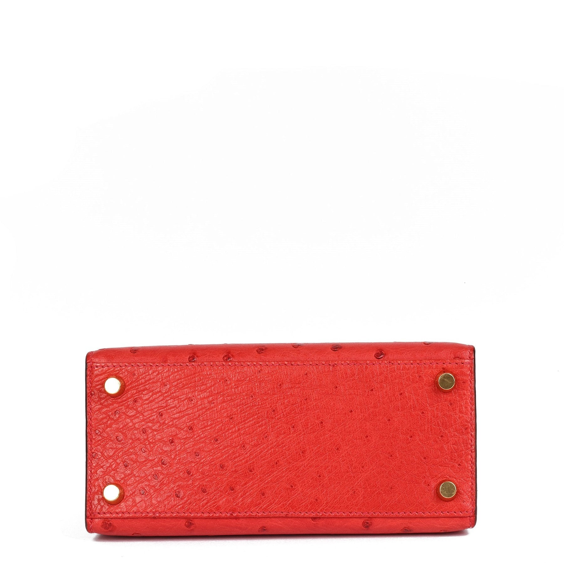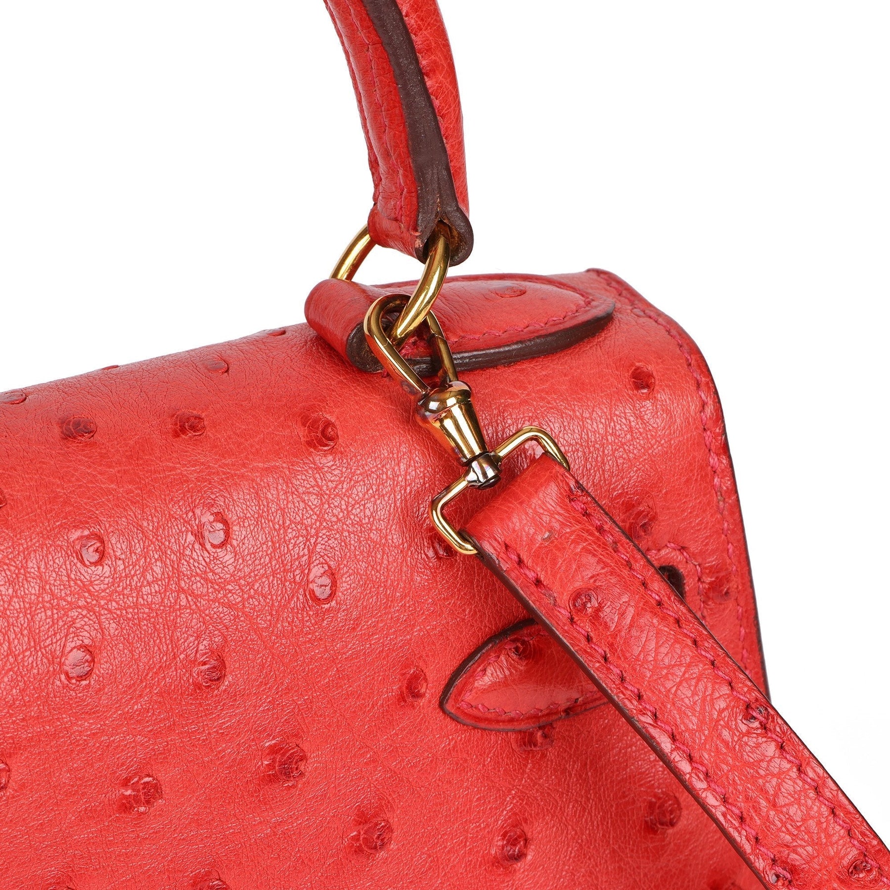 Hermes Rouge Vif Ostrich Leather Kelly 20cm Sellier Shoulder Bag