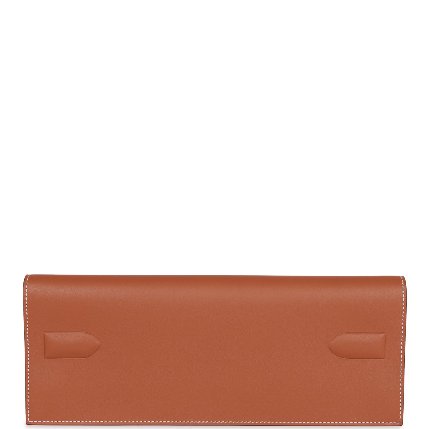 This Kelly Cut Shadow is in gold swift leather and has contrast stitching, embossed straps with embossed front toggle closure.