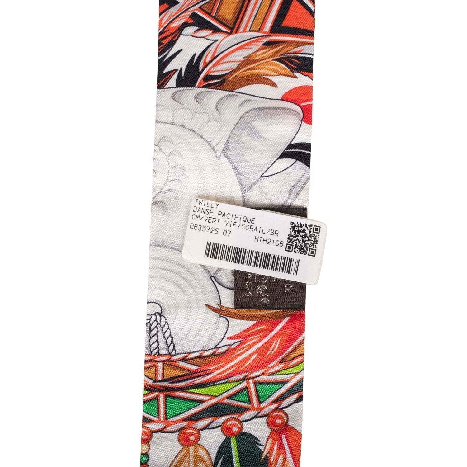 Hermes "Danse Pacifique" silk twilly pair designed by Laurence Bourthoumieux in a vert vif colorway.