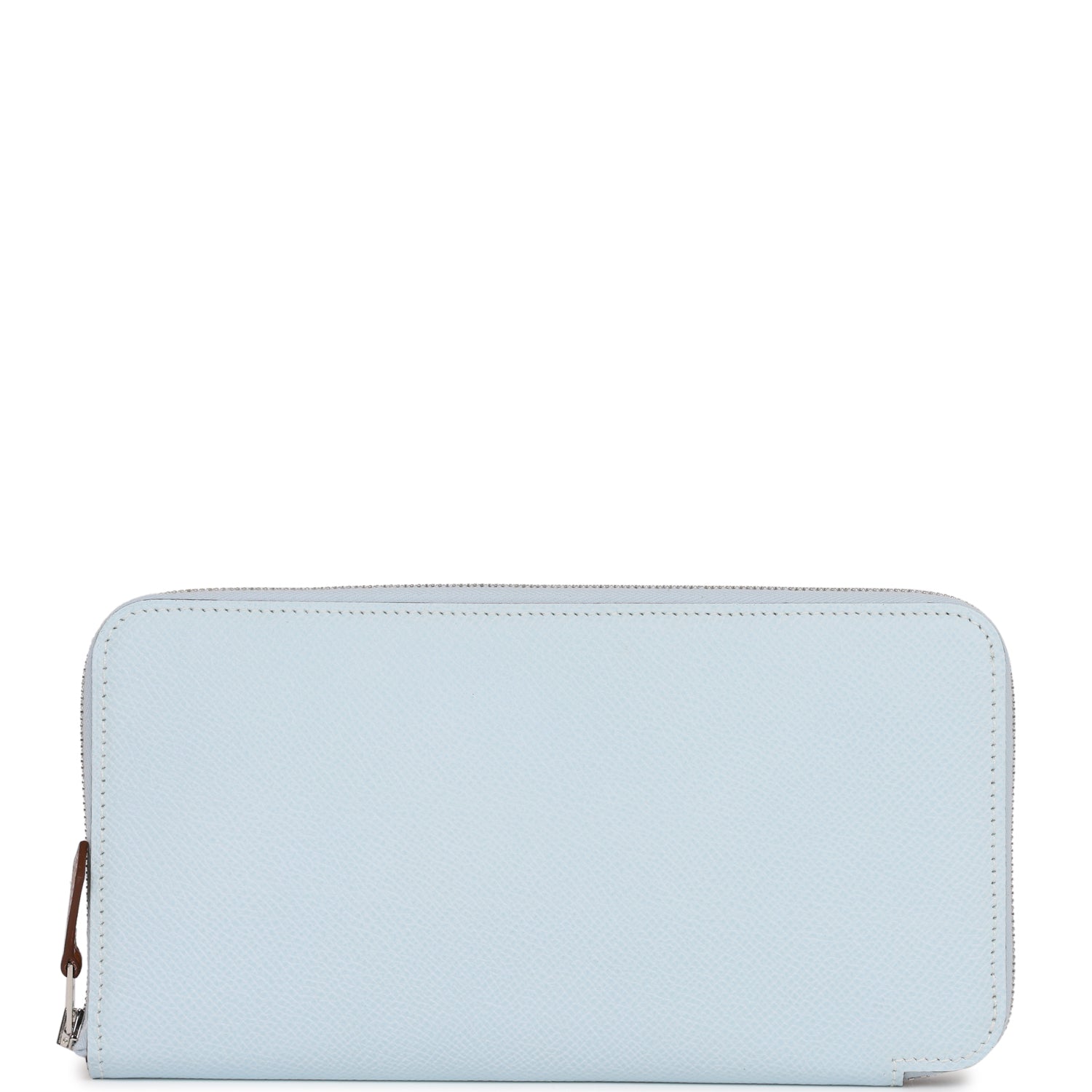 This Silk'In wallet is in Bleu Brume epsom leather with palladium hardware and has tonal stitching and zip around closure.