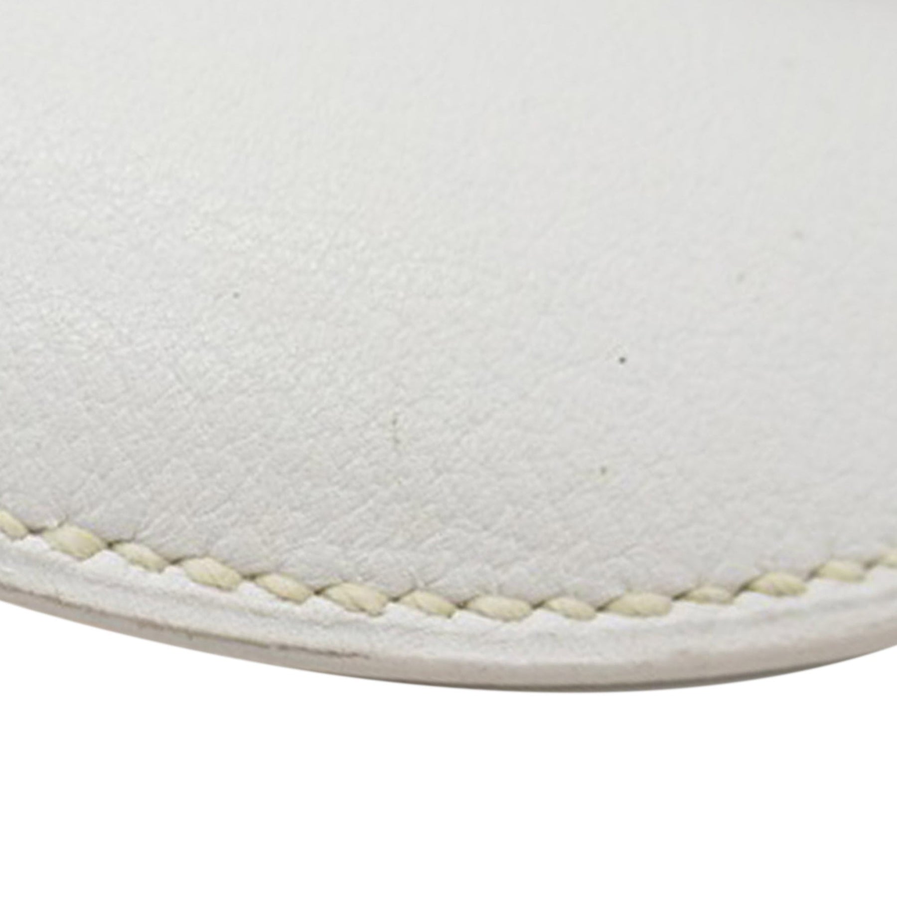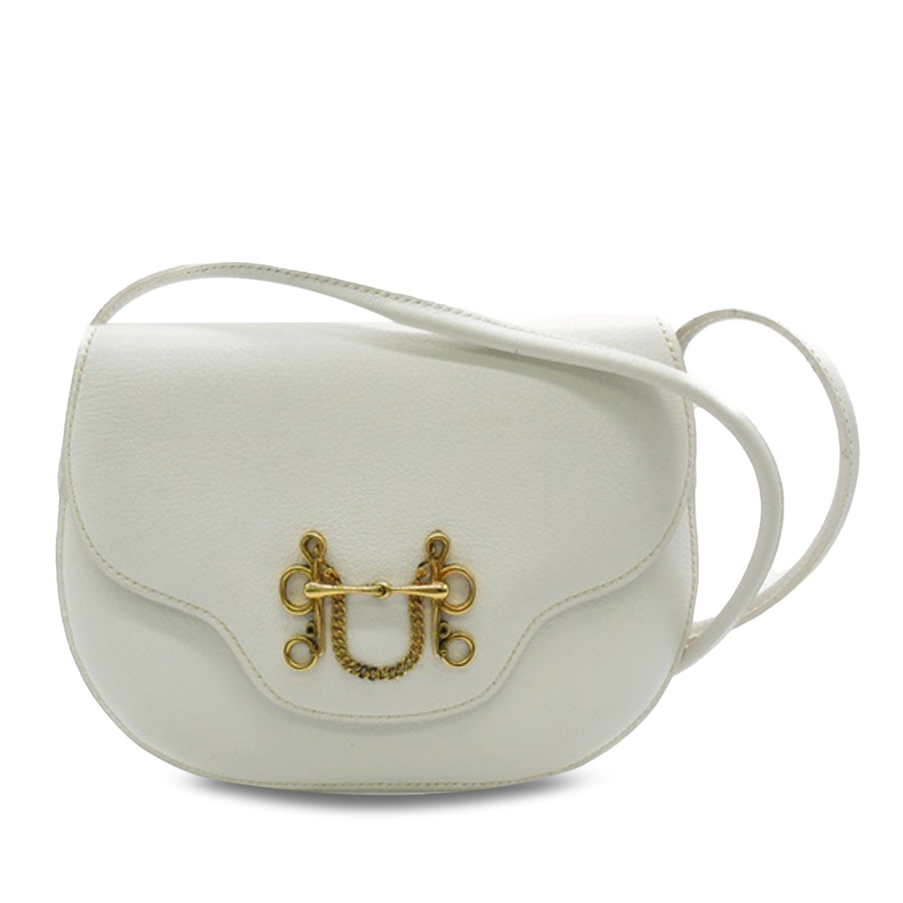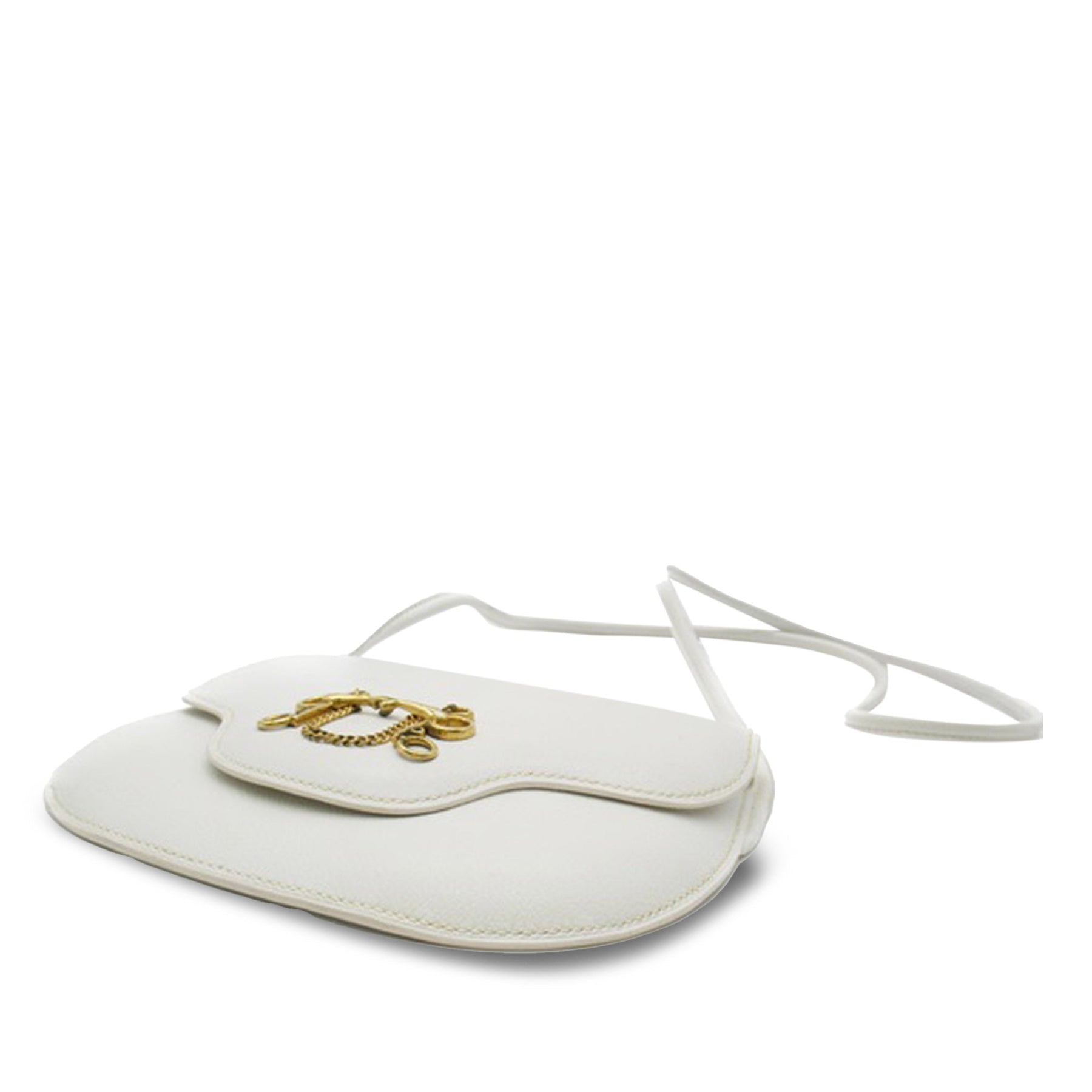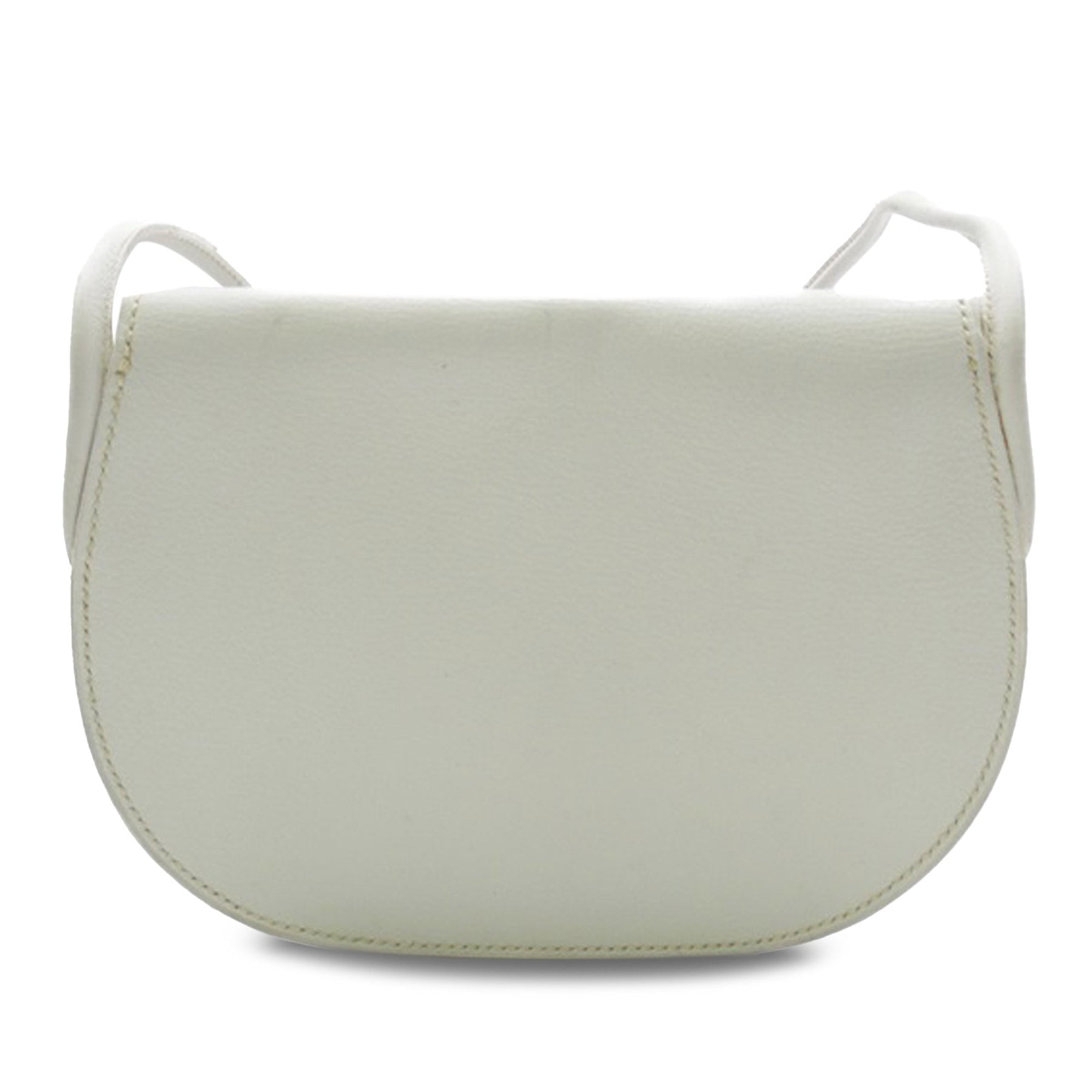 This crossbody bag features a leather body with gold-tone hardware, a flat leather strap, and a front flap with magnetic closure.