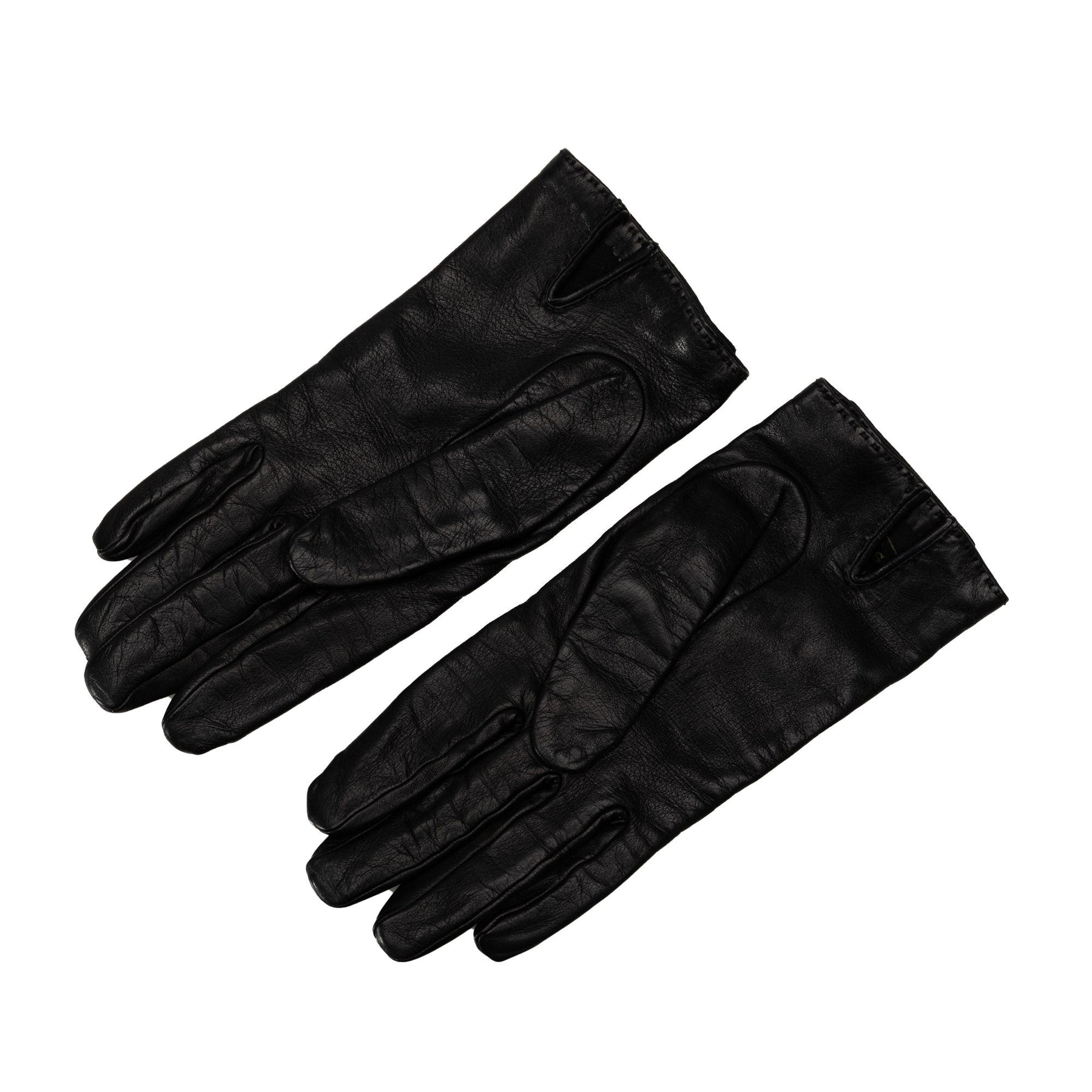 These gloves feature a leather body with gold-tone hardware. Comes with dust bag
