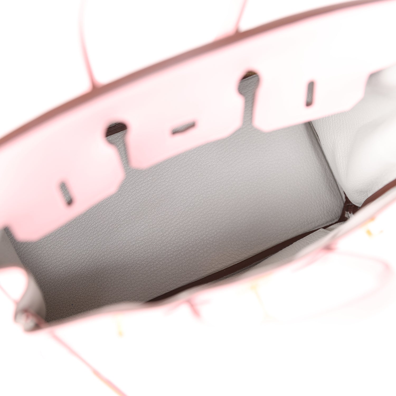 The interior is lined with Gris Perle chevre and has one zip pocket with an Hermes engraved zipper pull and an open pocket on the opposite side.