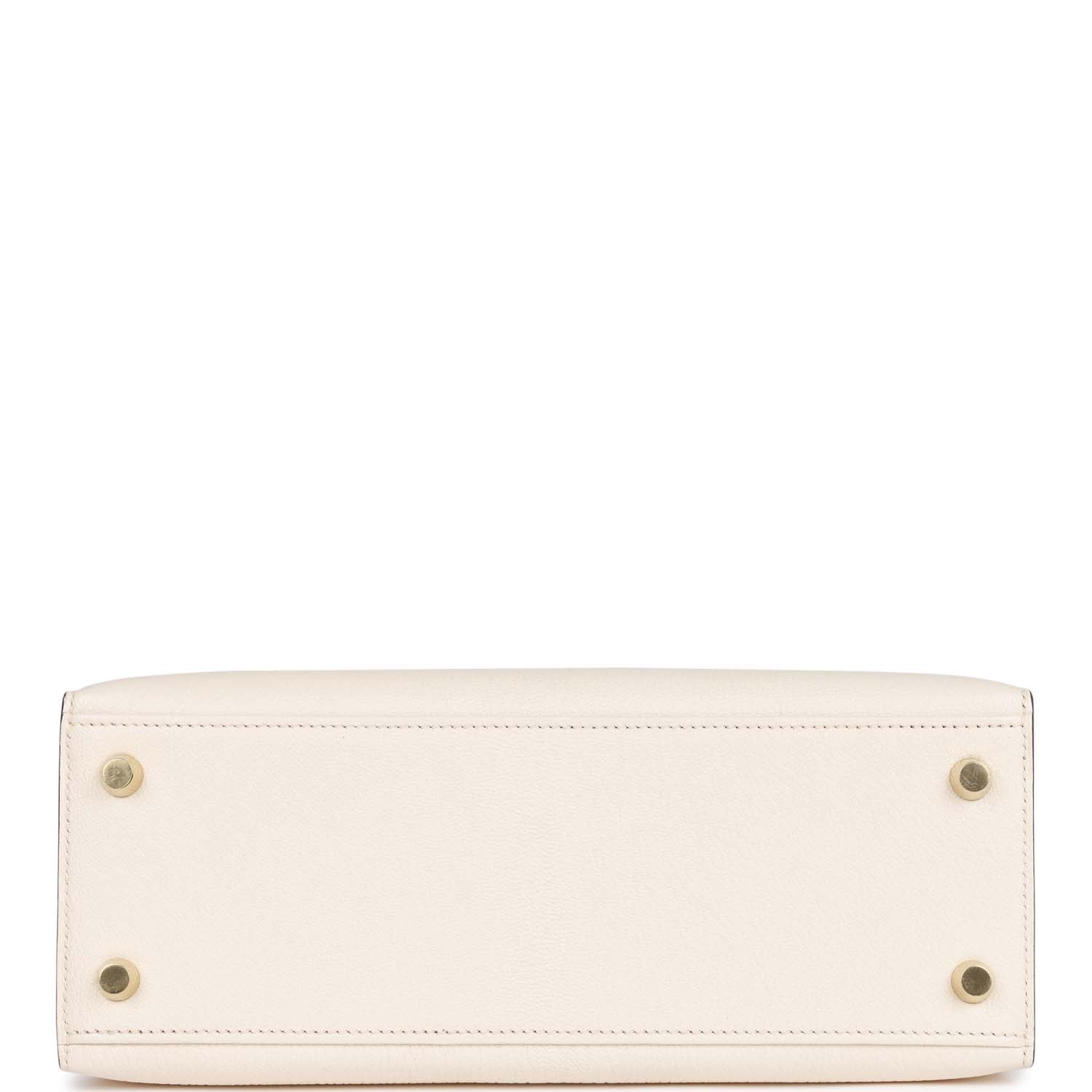 This Special Order Kelly, in the Sellier style, is in Nata chevre leather with brushed gold hardware and has tonal stitching, two front straps with toggle closure, clochette with lock and two keys, single rolled handle and removable shoulder strap.