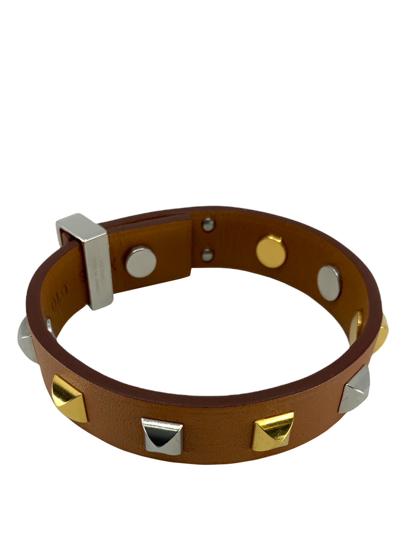 Prepare to turn heads with this Hermes Swift Mini Dog Clous Carres Studded Bracelet T1 on your wrist! Beautifully crafted in supple and smooth brown swift calfskin leather. Featuring gold and palladium pyramid stud accents.