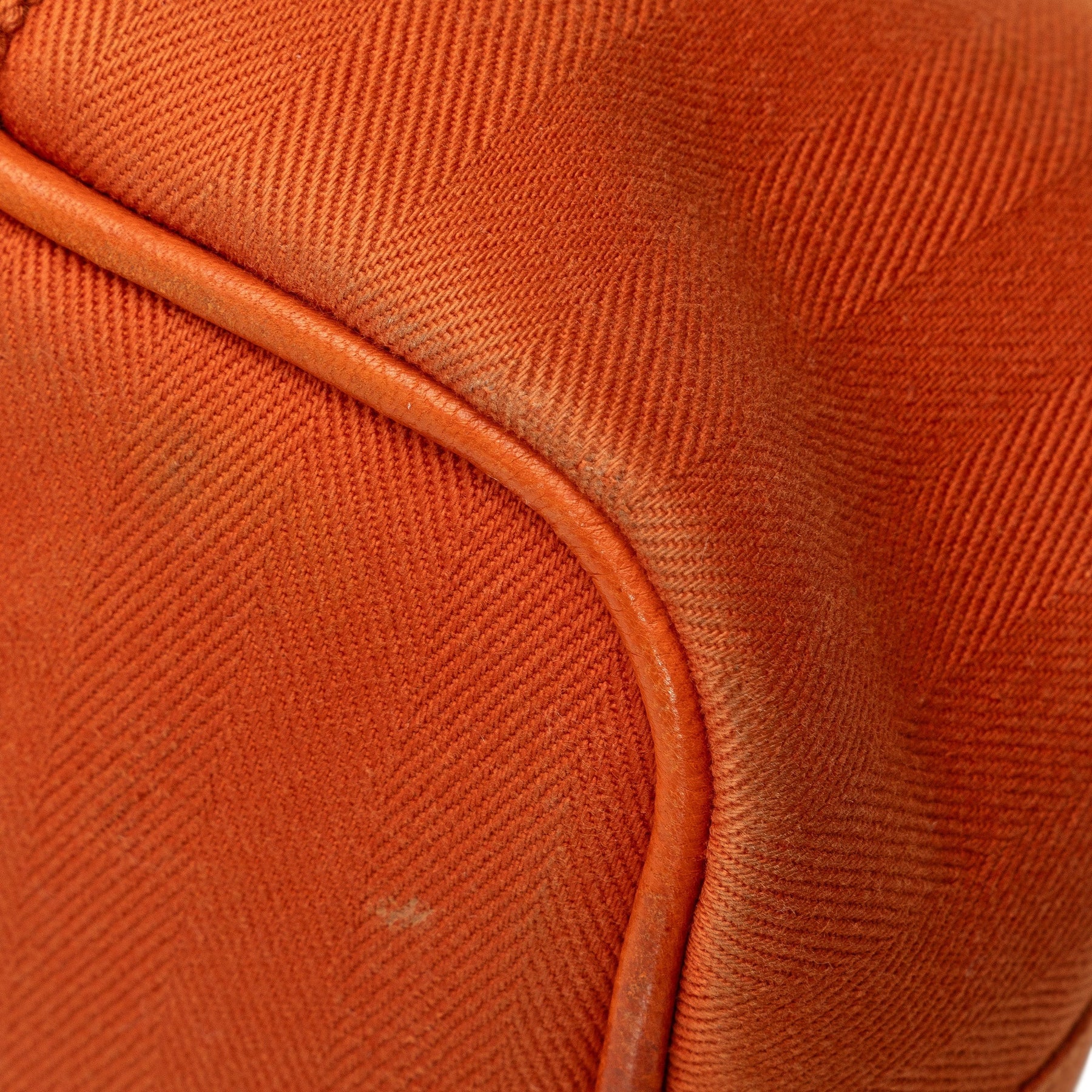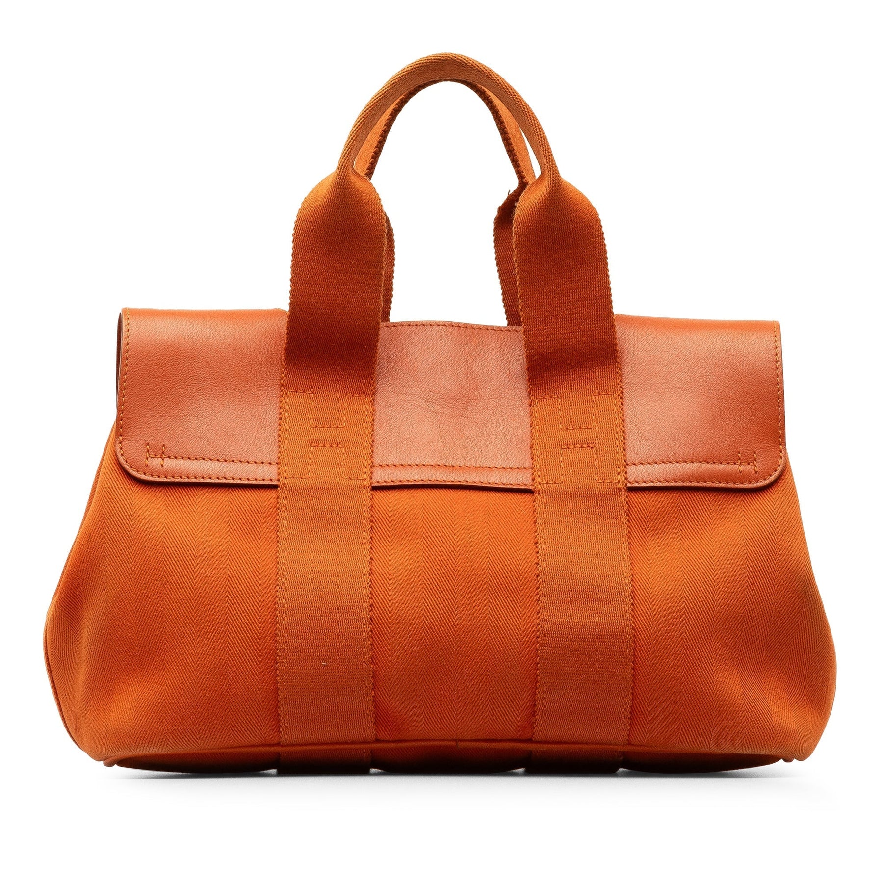 The Valparaiso Long PM features a canvas body, rolled handles, a leather front flap, a top stud closure, and an interior slip pocket.