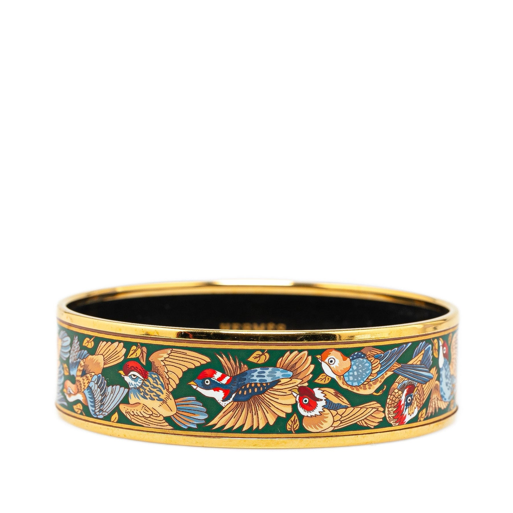 This bracelet features an enamel and gold-plated body. Comes with box.