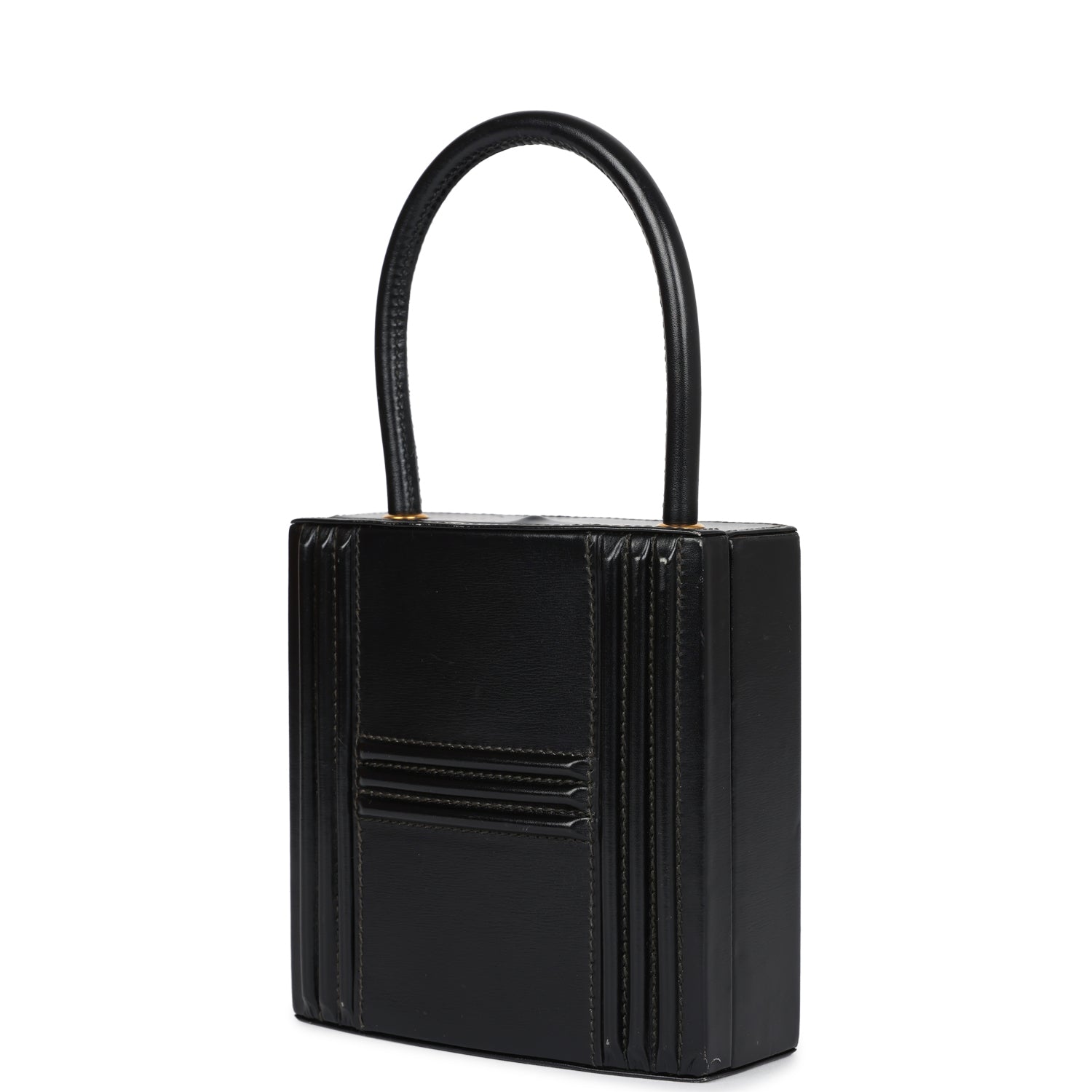 Vintage Hermes Mini Cadena Lock Bag Black Box Calf Gold Hardware