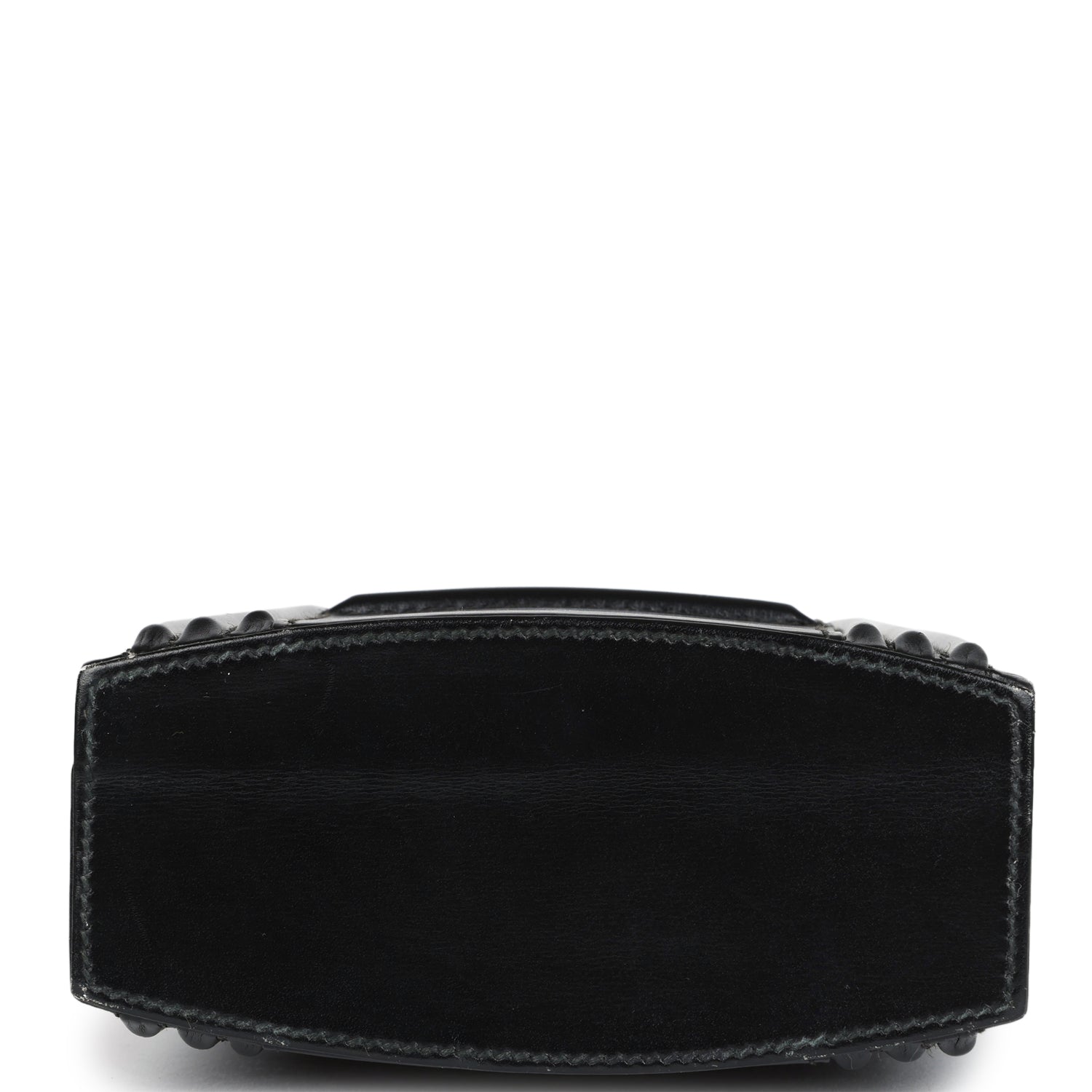 vintage Hermes Mini Cadena Lock Bag is of Black box calf leather with gold hardware, featuring tonal stitching, with the signature Hermes padlock detailing, a hidden push & snap lock closure and a single rolled top handle.