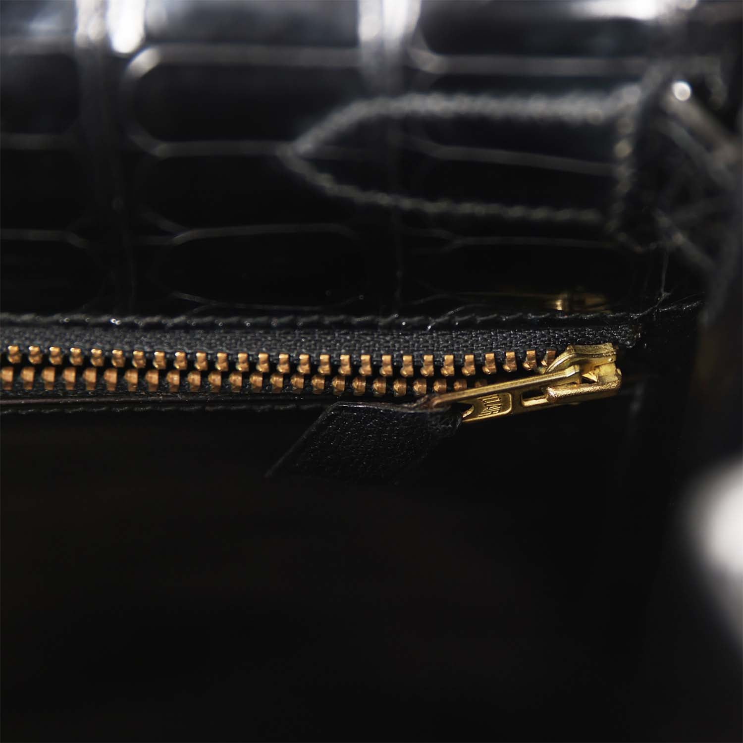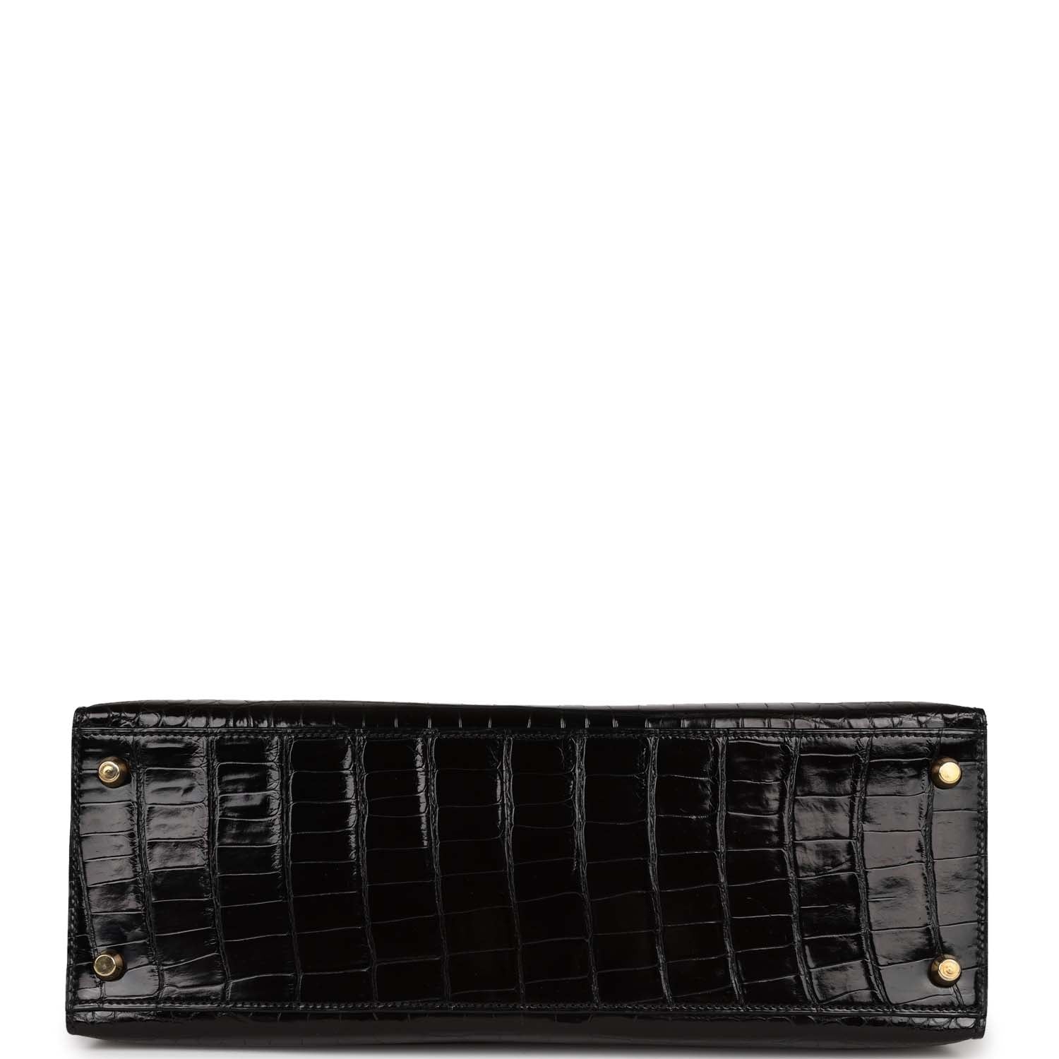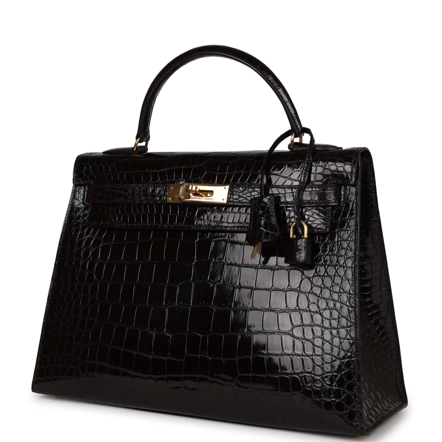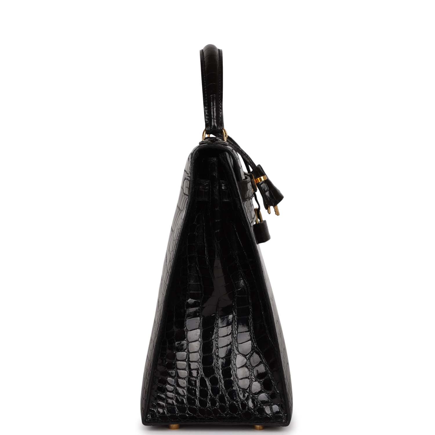 Vintage Top quality Hermes Kelly Sellier 32 Black Shiny Niloticus Crocodile Gold Hardware