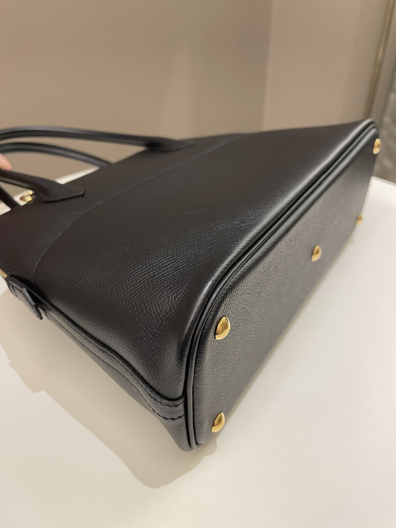 9-9.5/10 Great (inevitable hardware scratches, corner rub and interior imprints otherwise excellent. Almost clean front and back. Well structured)