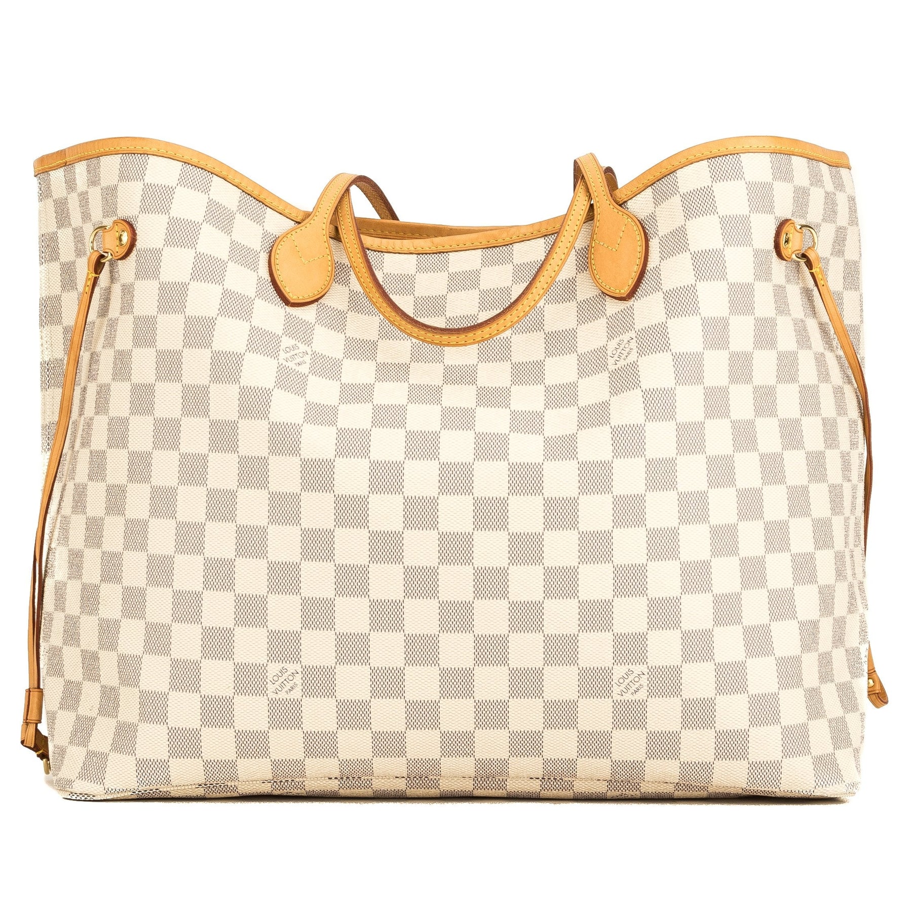 This is an authentic, pre-owned LOUIS VUITTON Neverfull GM Bag. It's both a classic and sophisticated handbag. This is the largest Neverfull - featured in the Damier Azur canvas with a vachetta leather trim, handles, side-cinching straps to change the capacity of the bag, and gold-tone hardware. The interior is spacious with a striped textile lining, a zip pocket, LV Archives details, a d-ring, and a hook closure. It's the perfect carry-all tote for the weekend or travel.
