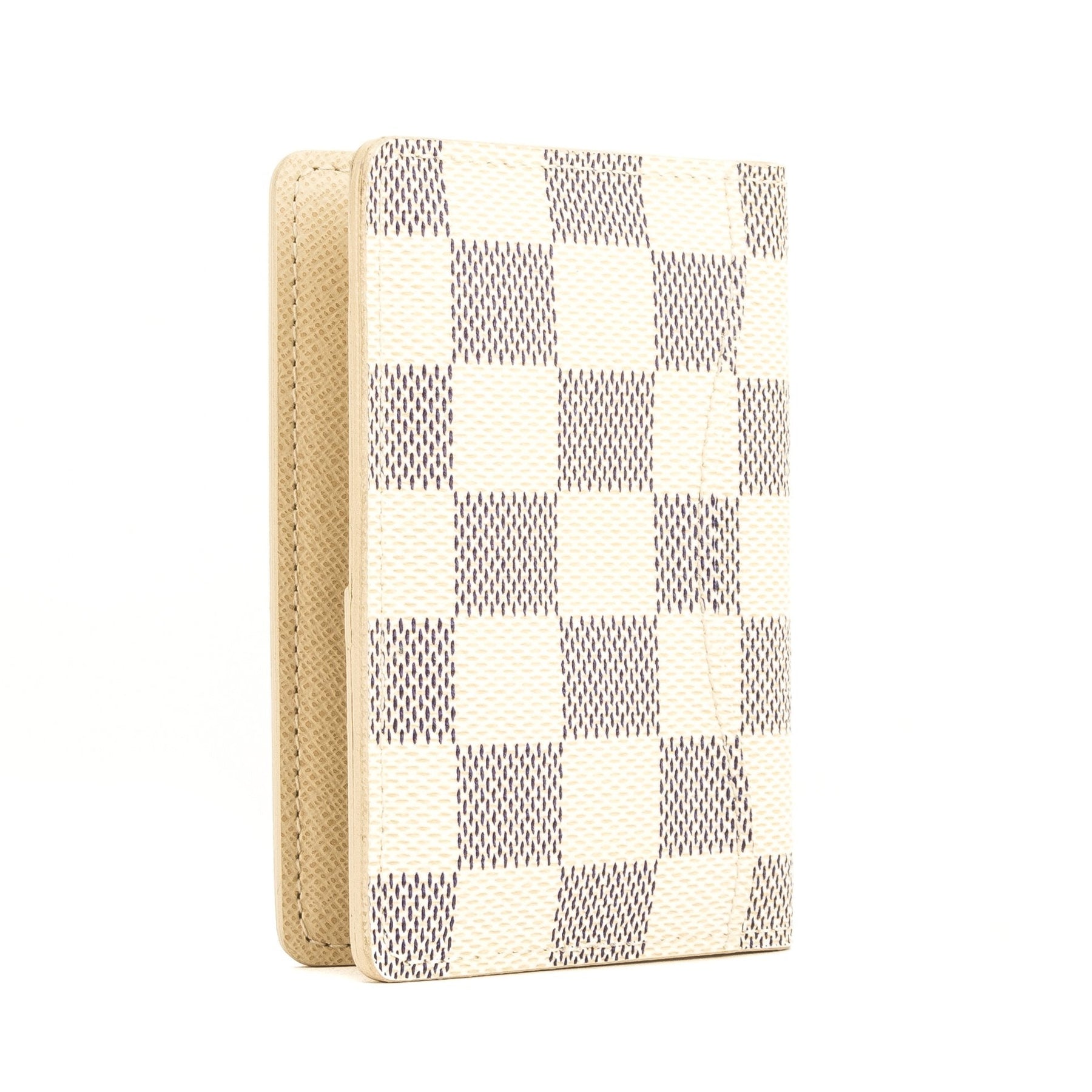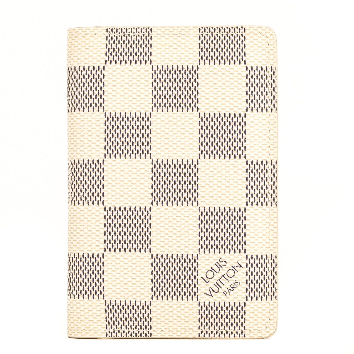 This is an authentic, pre-owned LOUIS VUITTON Pocket Organiser. This is a sophisticated and compact organizer to carry in your pocket, handbag, or briefcase. It features the Damier Azur canvas with a slip pocket on the back. The interior has a cross-grain leather lining with two card slots, an ID slot, and three flat pockets. Carry your cards, bills, and receipts in this pocket organizer.