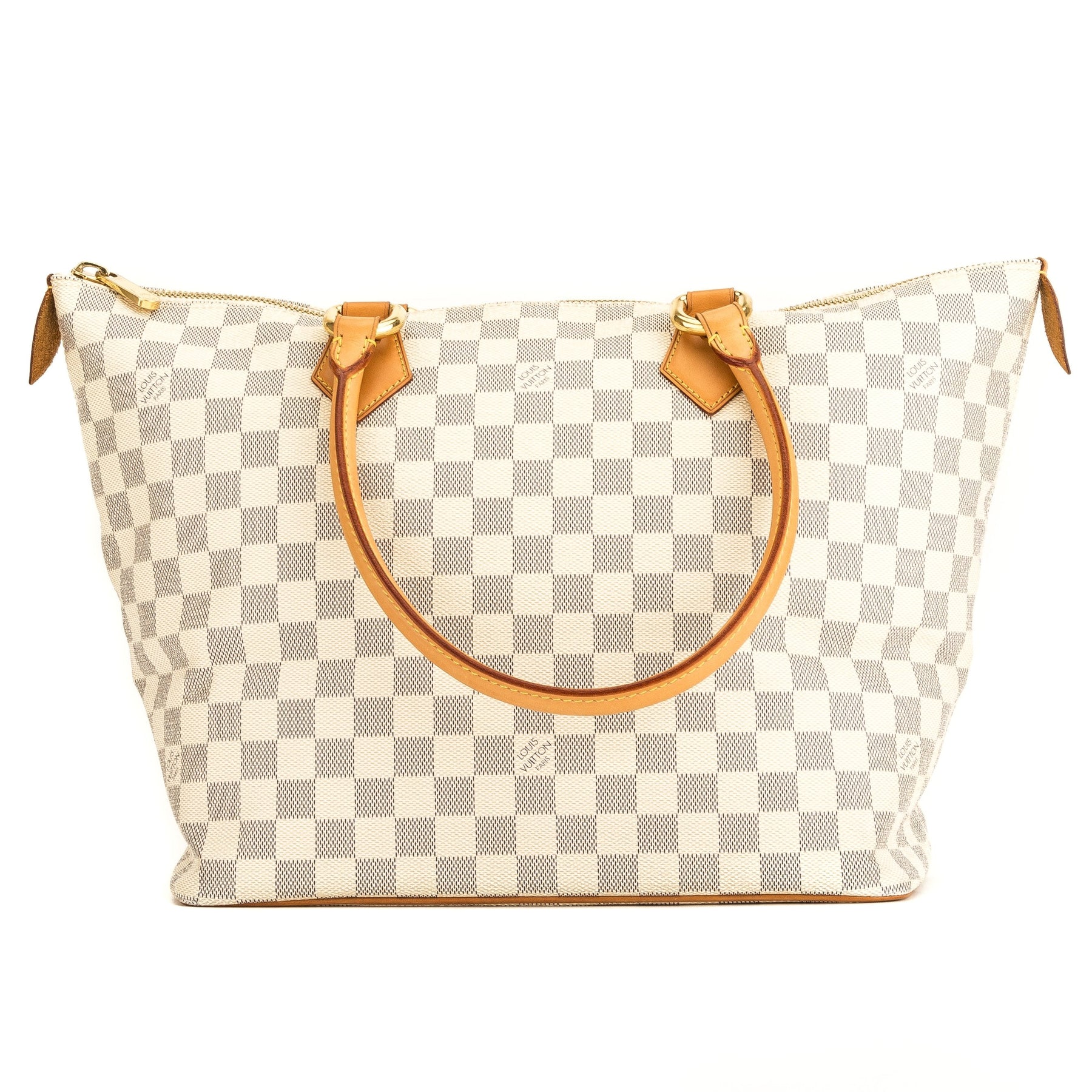 This is an authentic, pre-owned LOUIS VUITTON Saleya MM Bag. This is the medium-sized Saleya bag with a lightweight design and a roomy interior. It features the beautiful Damier Azur canvas with a vachetta leather trim, long top handles, and gold-tone hardware. The interior has an alcantara lining with an open pocket, a cellphone pocket, a d-ring, and a zip closure. This is a sophisticated and versatile tote for every day.