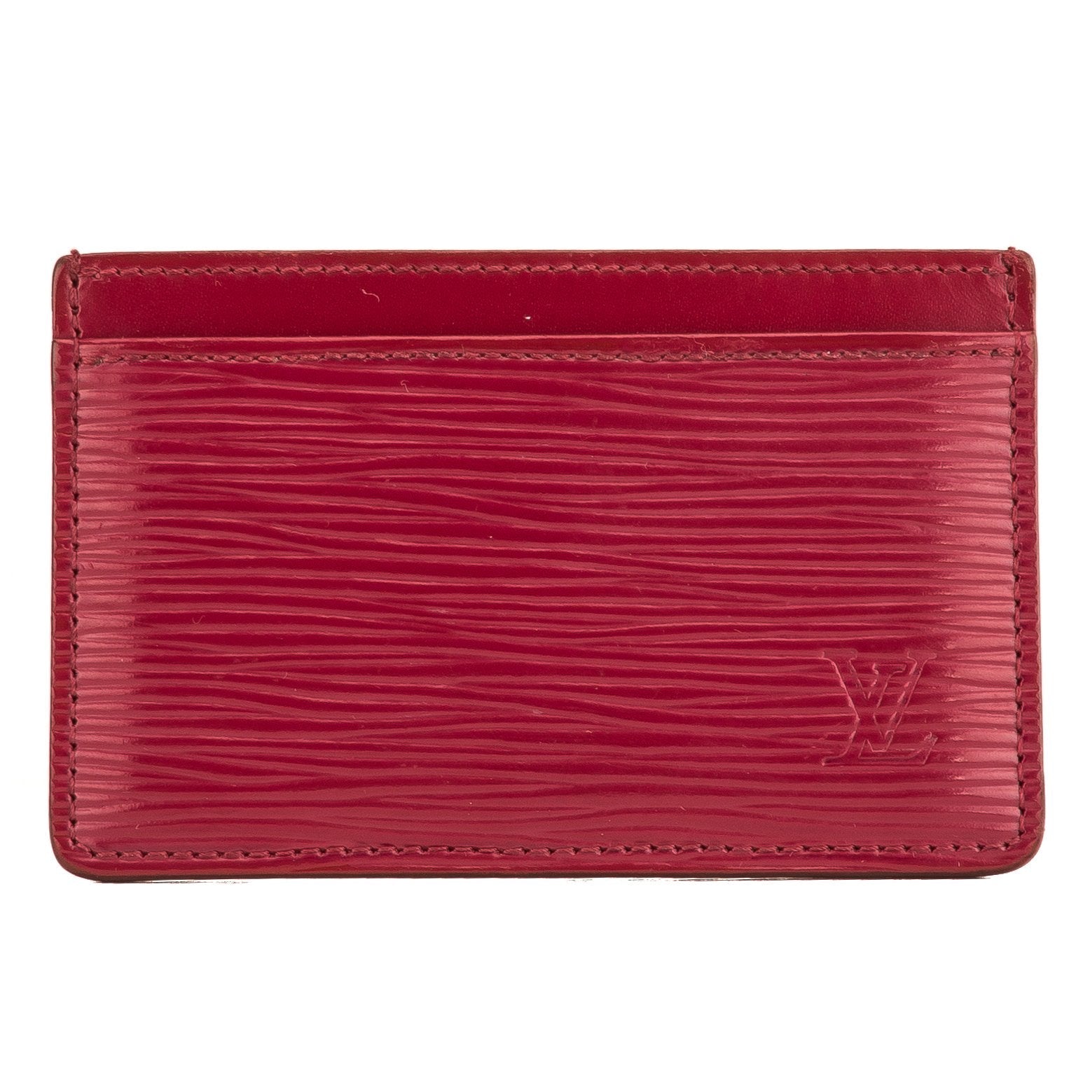 This is an authentic LOUIS VUITTON Fuchsia Epi Porte-Cartes Simple Card Holder. It's a sophisticated card holder for a savvy business professional. It's featured in a fuchsia epi leather canvas with a cross-grain leather interior, it has one card slot front and back and a center pocket. It's sleek and compact and slips easily into your pocket, briefcase, or handbag. Keep your business cards or credit cards organized in this classy card holder by Louis Vuitton.