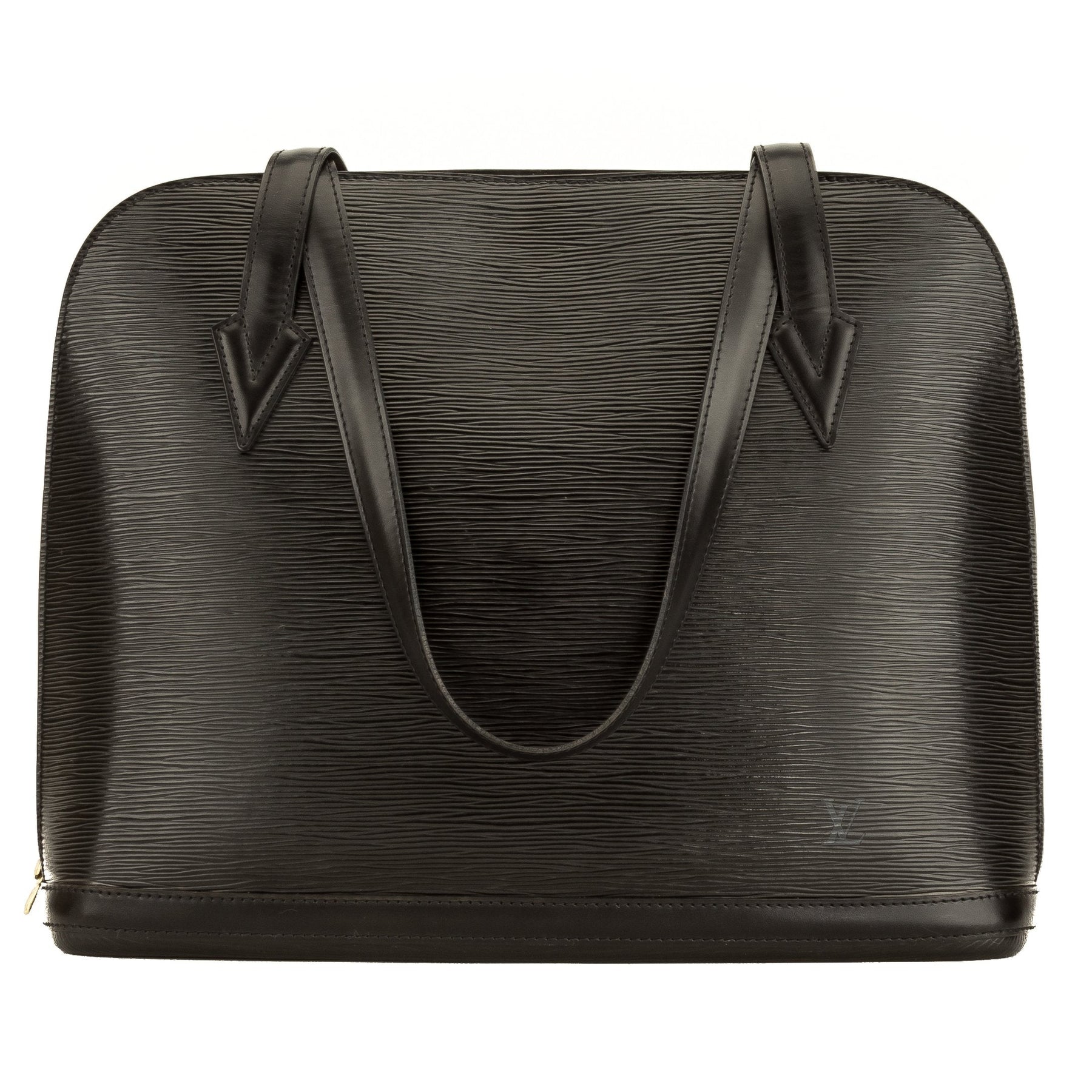 This is an authentic, pre-owned LOUIS VUITTON Lussac Bag. It's finely crafted in the Black Epi leather with a smooth leather trim, long shoulder straps, and golden brass hardware. The interior has an alcantara lining, a zip pocket, a open pocket, a d-ring, and a double zip closure. This is a chic LV handbag - great for carrying your daily essentials.