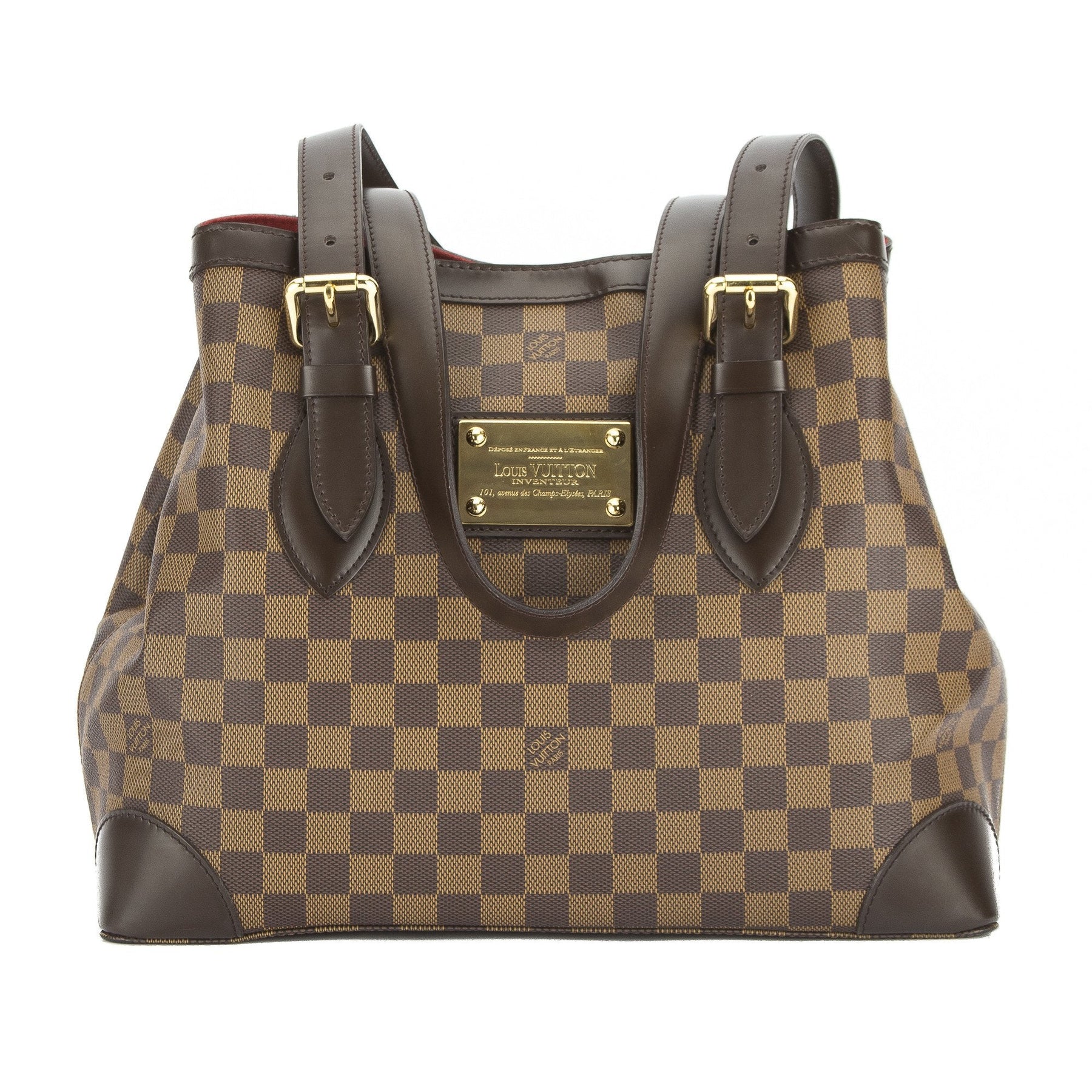 This Louis Vuitton Damier Ebene Hampstead MM Bag is practical yet fashionable at the same time. It features signature Damier Ebene canvas, brown leather handles and trimmings and spacious interior. The ideal everyday tote!