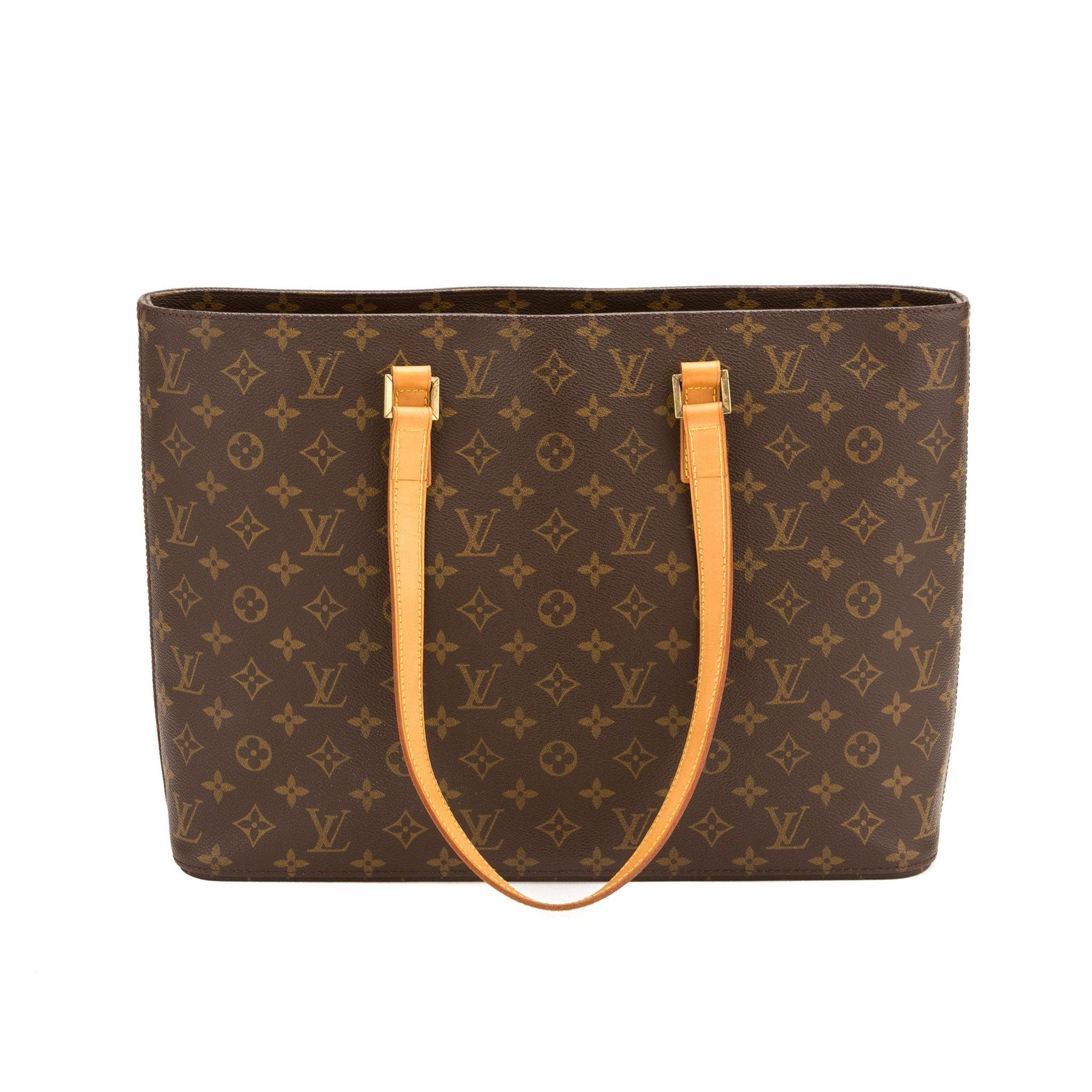 This authentic Louis Vuitton Monogram Luco Tote is an ideal everyday bag! It features a multiple interior pockets , one with a zipper closure, and it also has a zip-top closure for the entire interior. The exterior features the classic LV monogram pattern and the long vachetta handles make it the ideal tote for shopping, work and more!