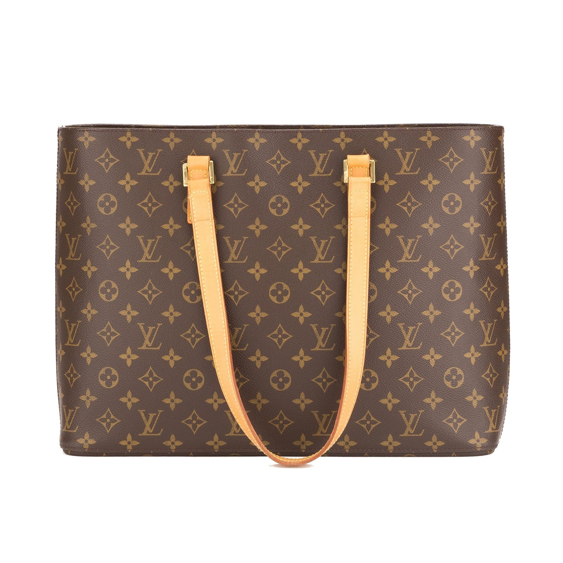 This authentic Louis Vuitton Monogram Luco Tote is an ideal everyday bag! It features a multiple interior pockets , one with a zipper closure, and it also has a zip-top closure for the entire interior. The exterior features the classic LV monogram pattern and the long vachetta handles make it the ideal tote for shopping, work and more!